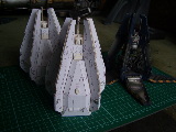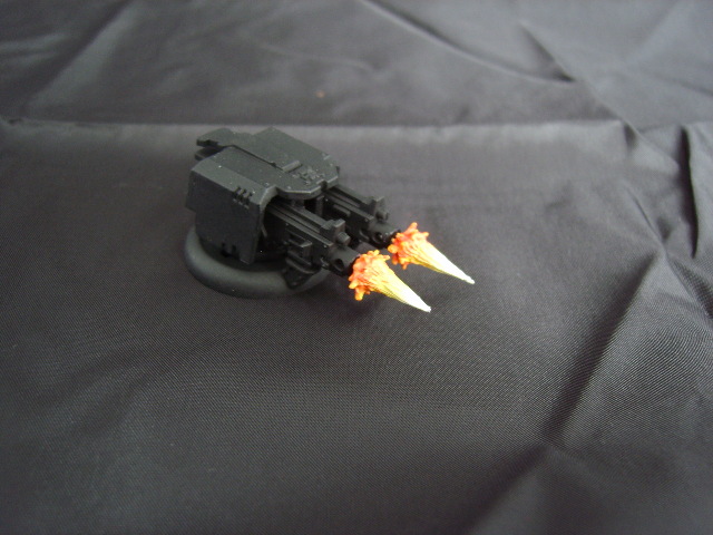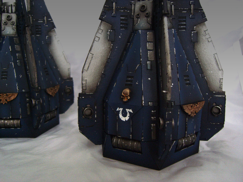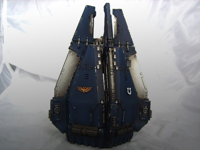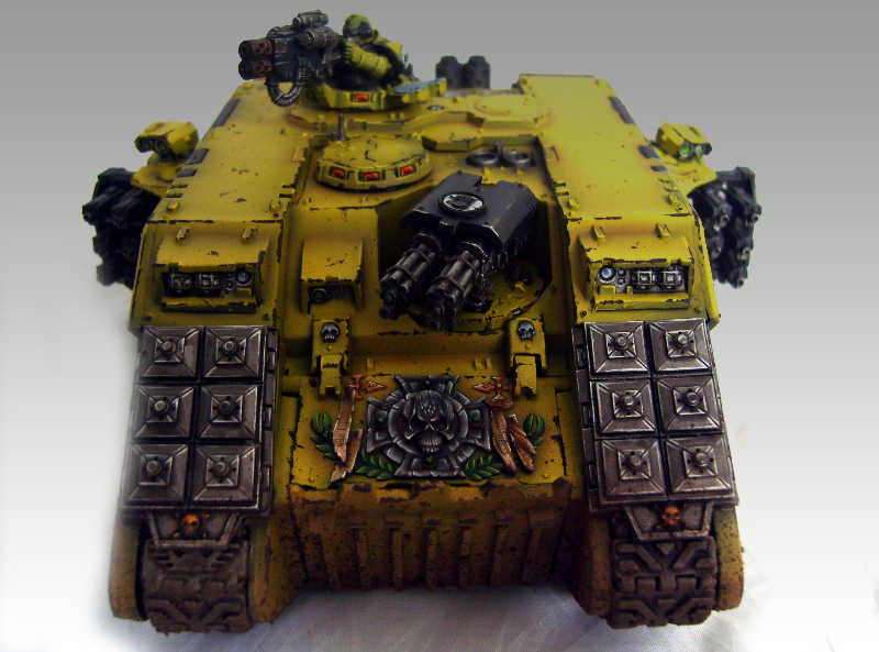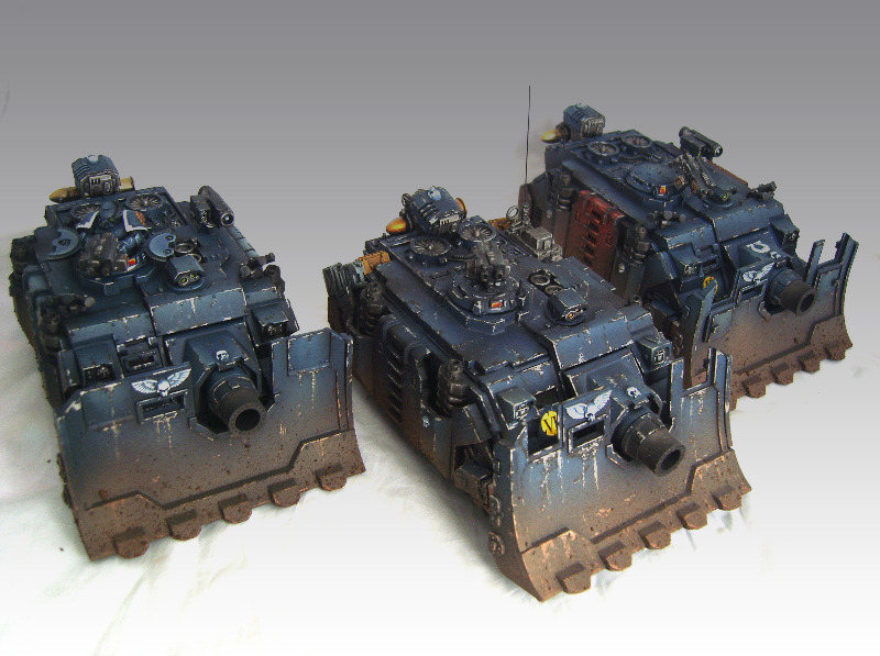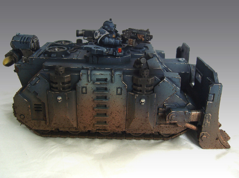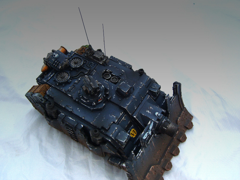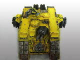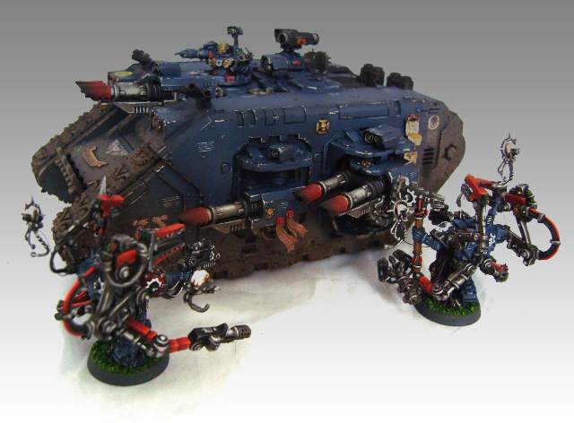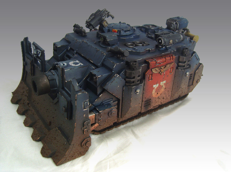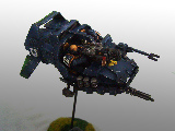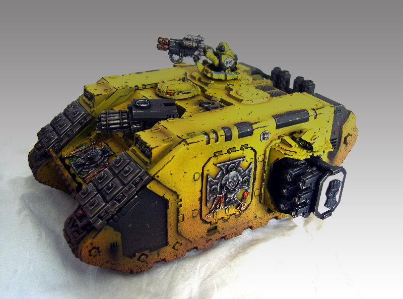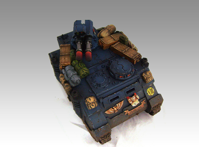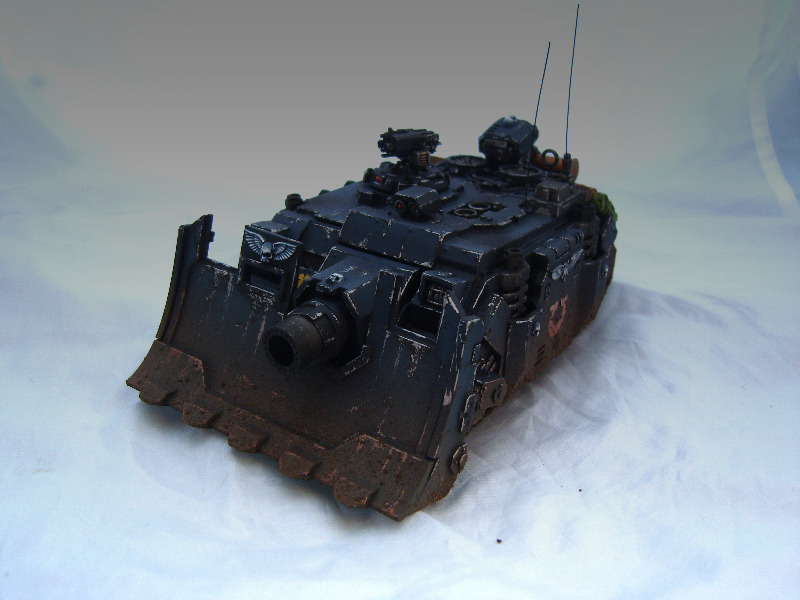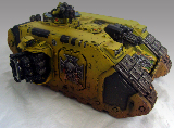 Last of the heavy armour. The land raider Terminus. Typical, bigger guns come along and Chronus is straight into the commanders seat! The weapons are held on using magnets which allow it to be quickly converted into a passable standard raider |