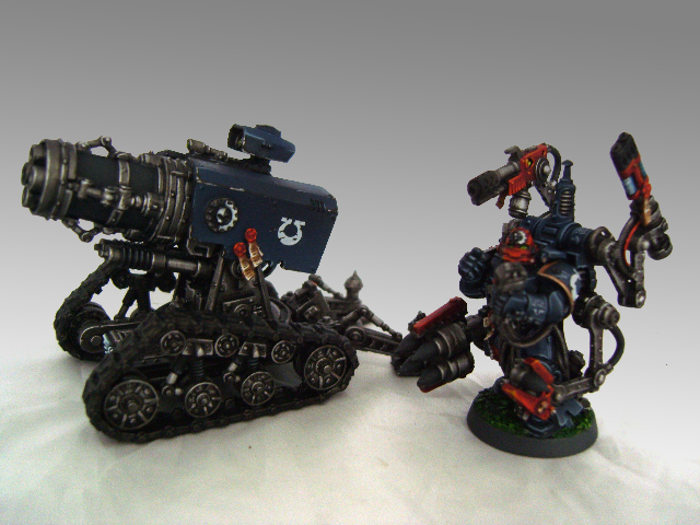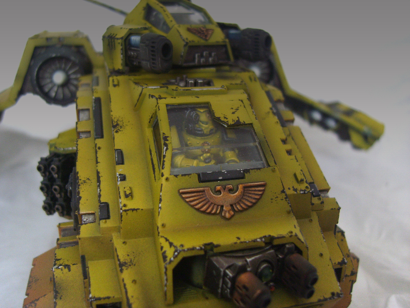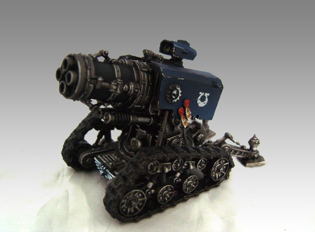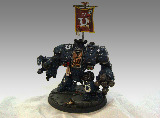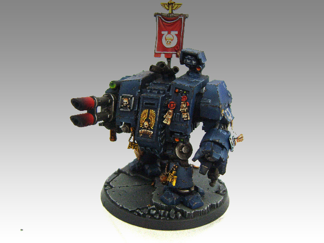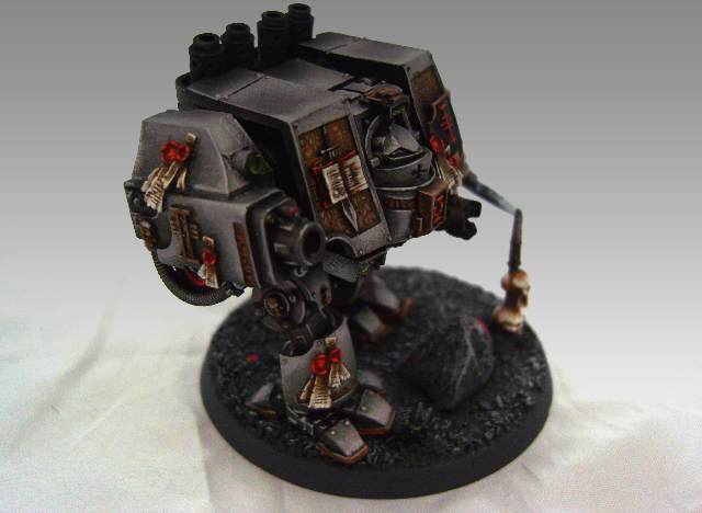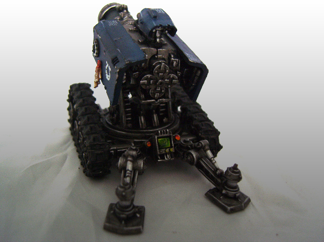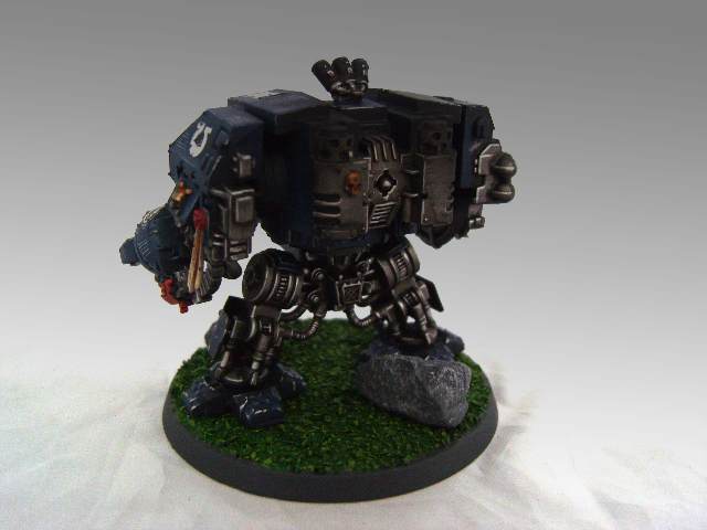 Dave loved being a space marine. It wasn't the comradery. It wasn't the utter devotion to the Emporer. It wasn't even the cool armour he got to wear every day. No, it was the utter and outright violence he enjoyed. There was nothing better for Dave than to hand out a little power glove lovin' or feel the gore splatter against his helmet as he cut another Eldar in two with his chainsword. In fact Dave's last living memory was one of violence as he charged screaming at the Eldar Avatar bent on vengeance for the marine squad he had just seen slaughtered by the Demonic abomination. As the tip of the singing spear filled his vision his world went black. Dave awoke. Inside his metal coffin he could still sense the world around him, he monitored the wind speed and calibrated the targeters. The intercom directed him to 'go over there and BREAK that' oh joy....there was a heaven! |