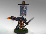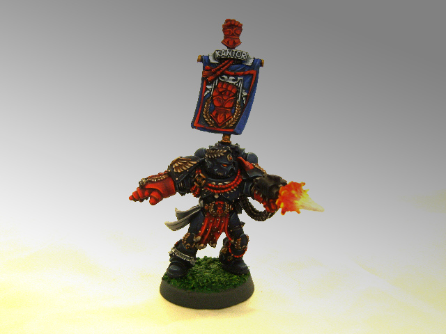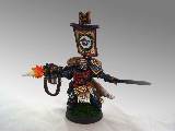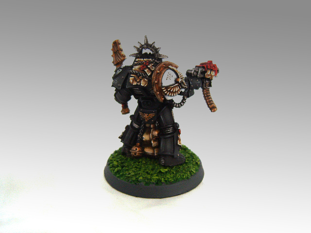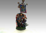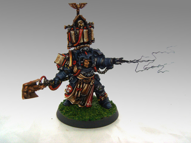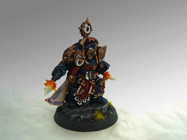 He started out on a nice cushy number as head candle snuffer on the Mighty Titan Brother Humongus. Until an unfortunate incident with a weak bladder (an unfortunate encounter with the wrong end of a ripper swarm during the tyranid wars) and the purity font! |