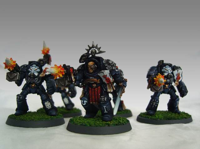 Marine Devastator Squad Alpha Looks like the Serg cut himself shaving |