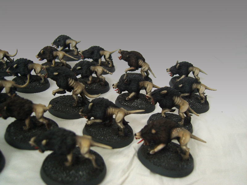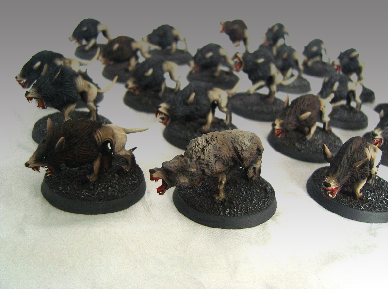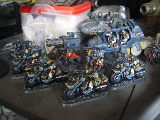 The whole force to be painted. I was kind of hoping that painting this lot for somebody else might get the whole wolf thing out of my system and save me a fortune. Sadly as each piece is finished I find myself thinking 'just a little assault force sitting alongside the Crimsons might look cool' <rolls eyes> |