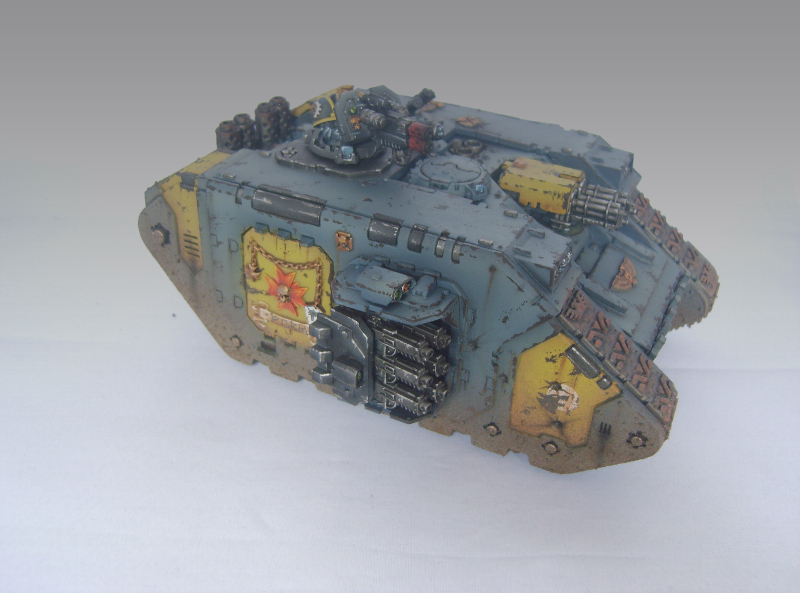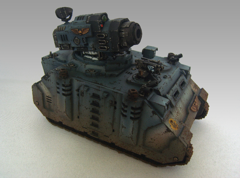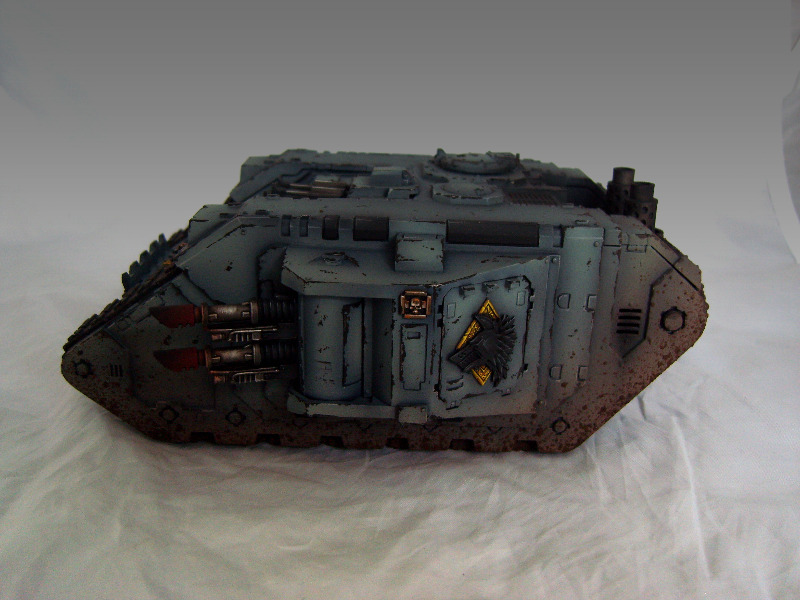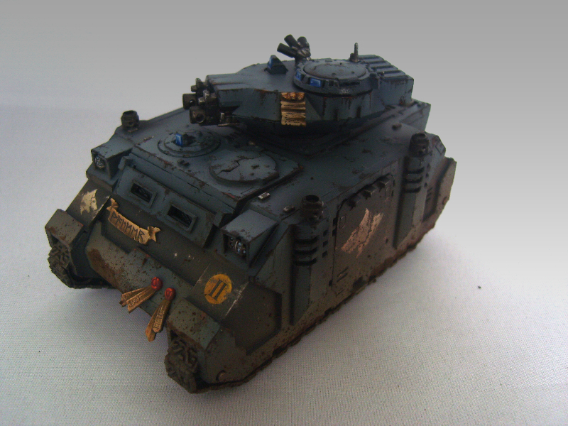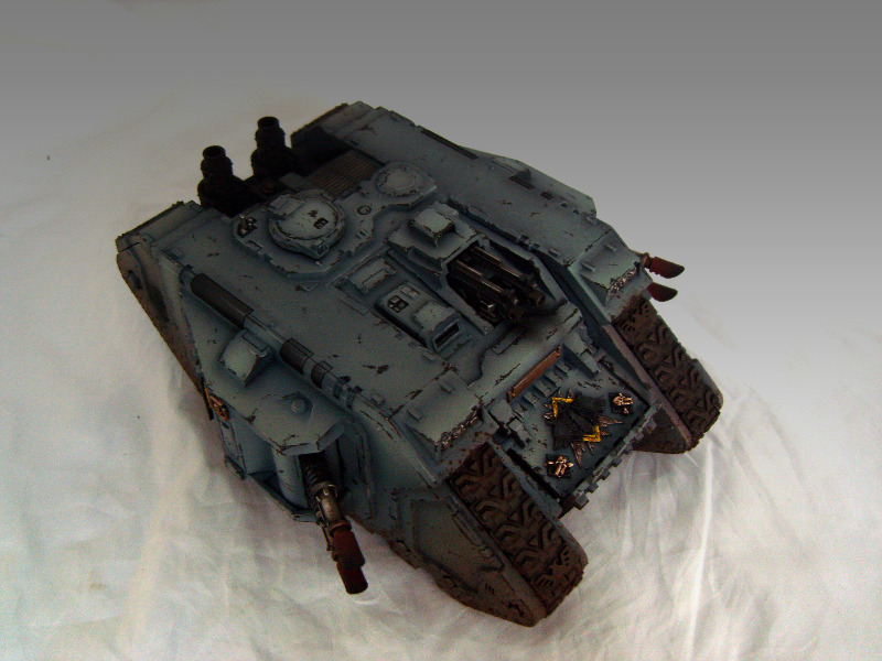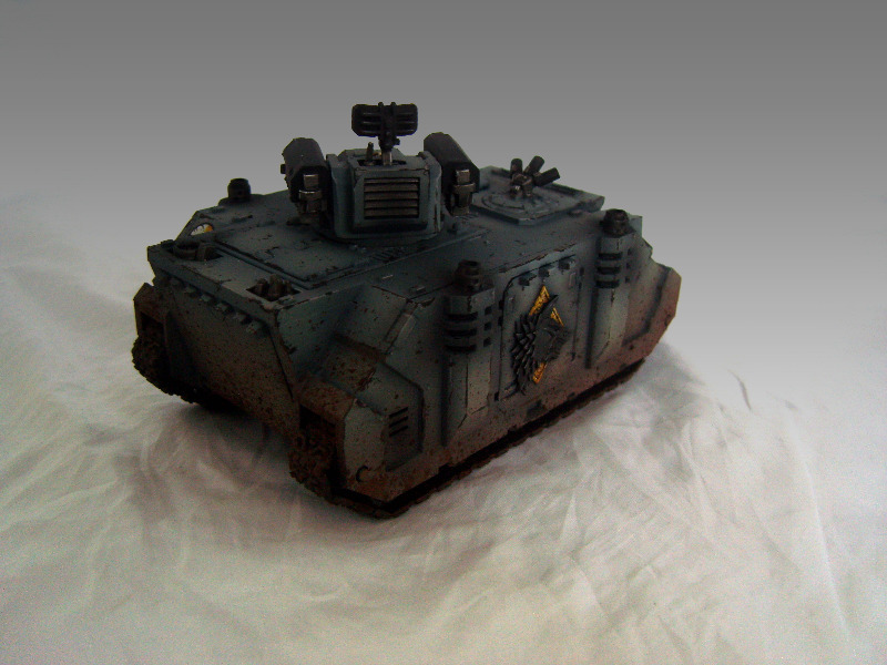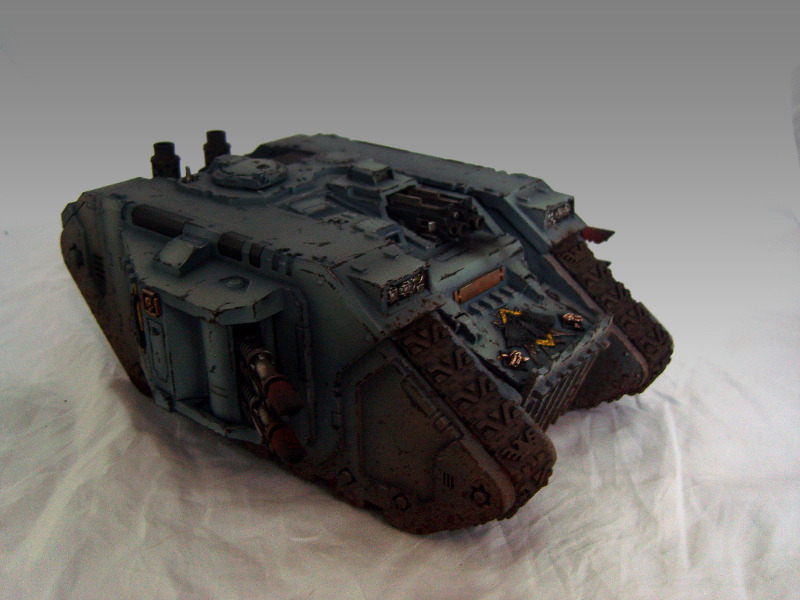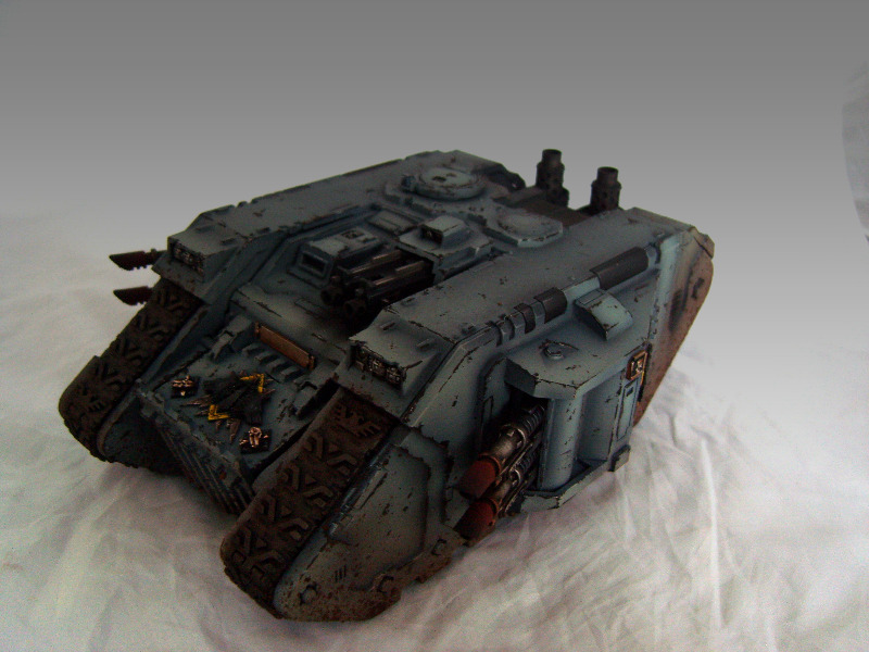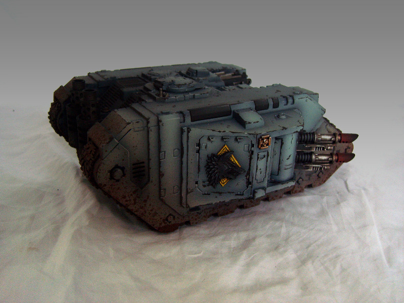 First off the board is this Landraider, I think the lighter wolf grey shows off the weathering brilliantly! |