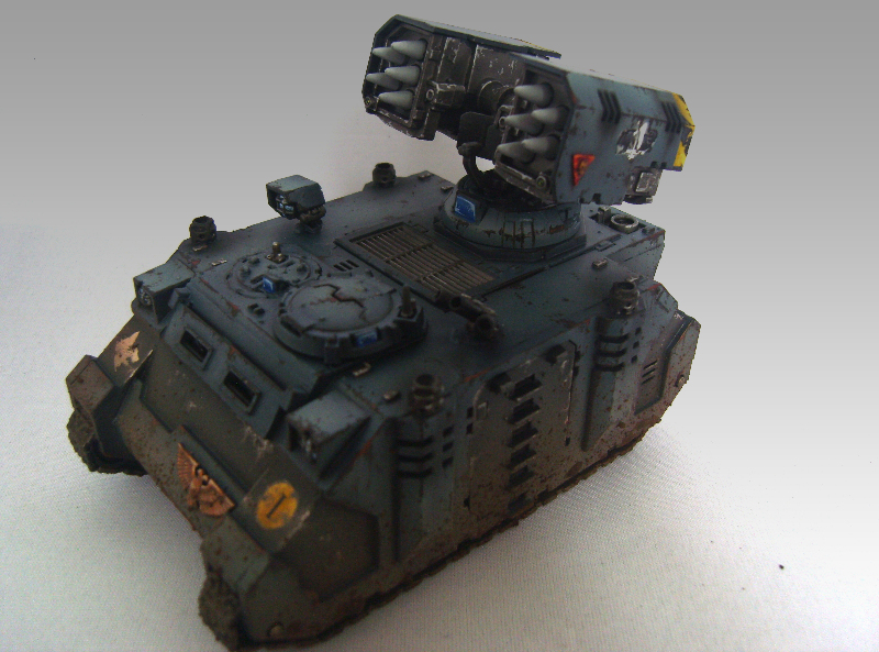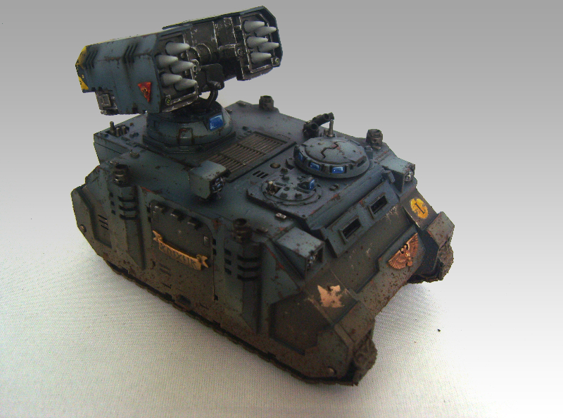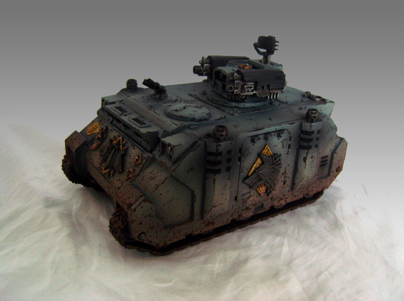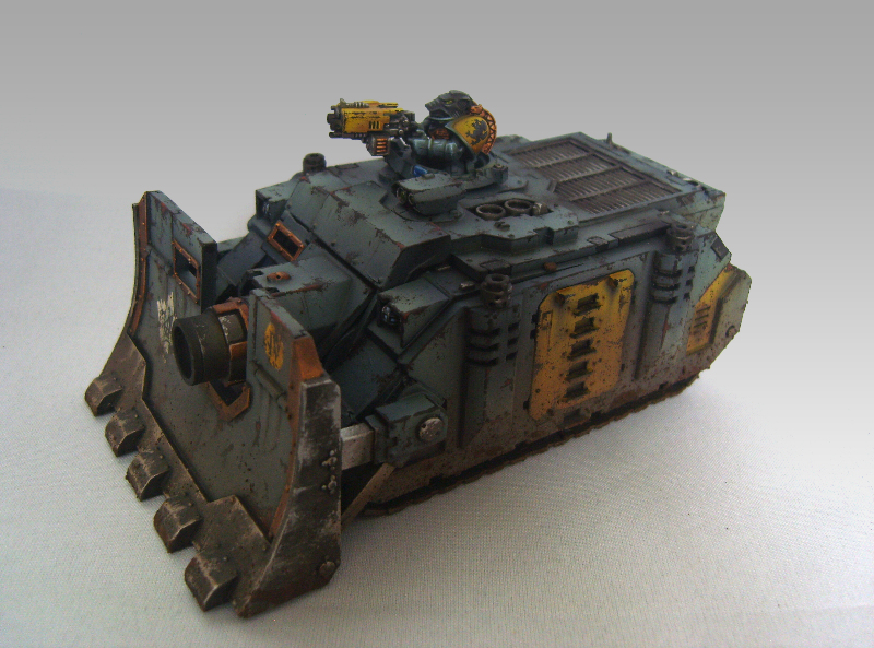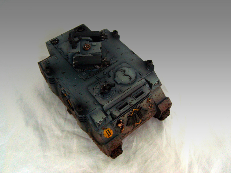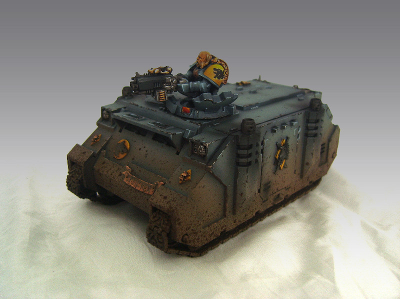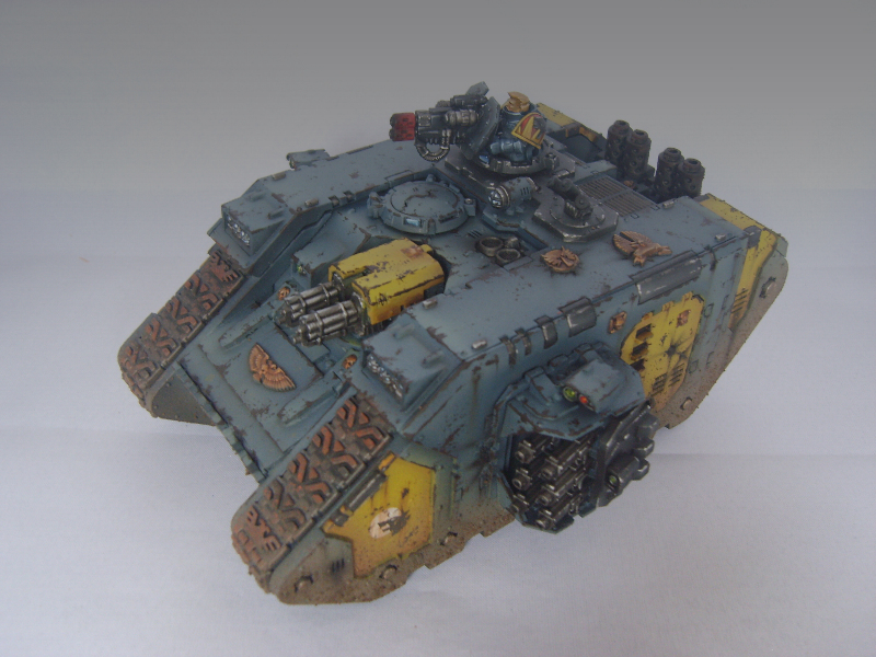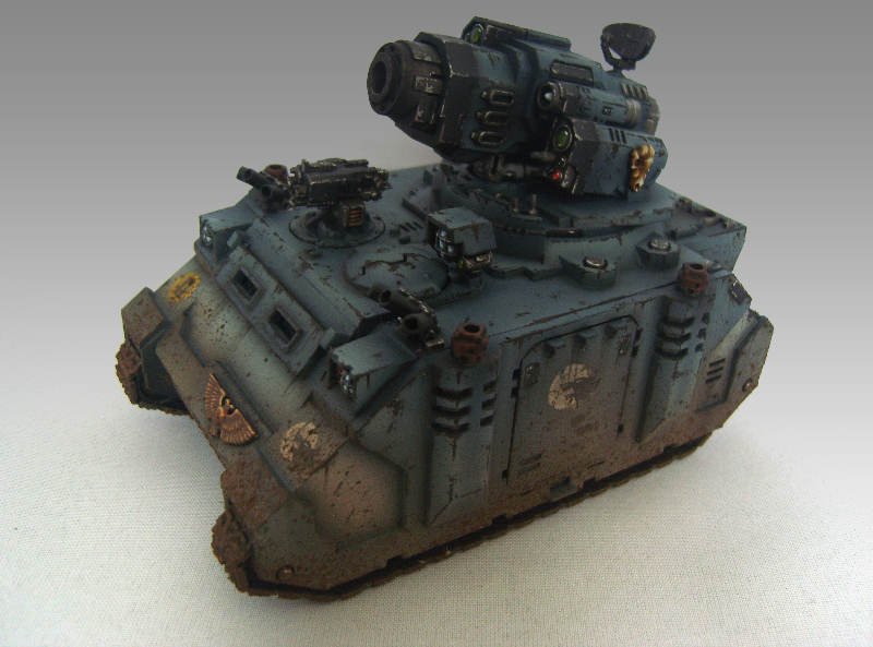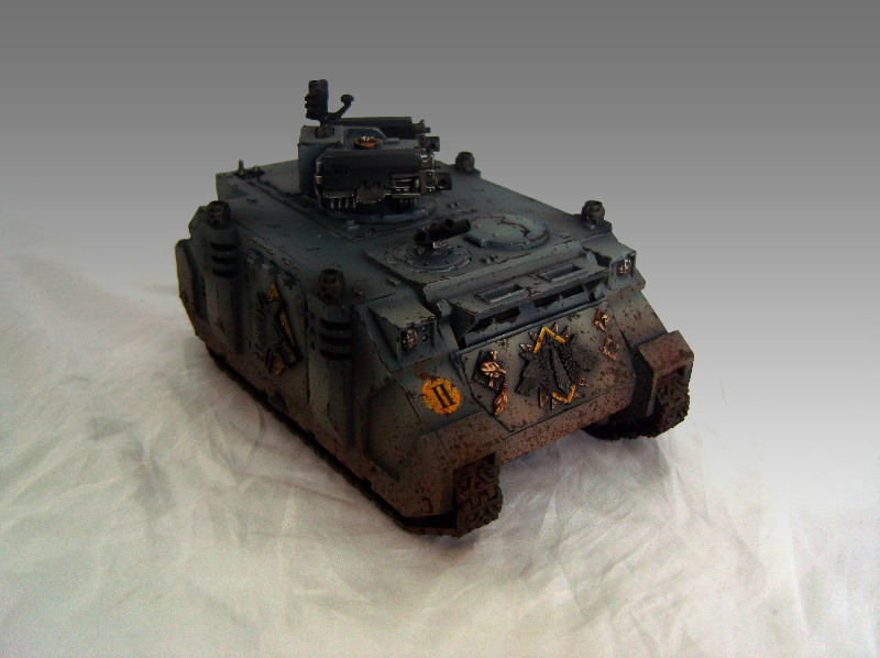 First off the board is this Landraider, I think the lighter wolf grey shows off the weathering brilliantly! |