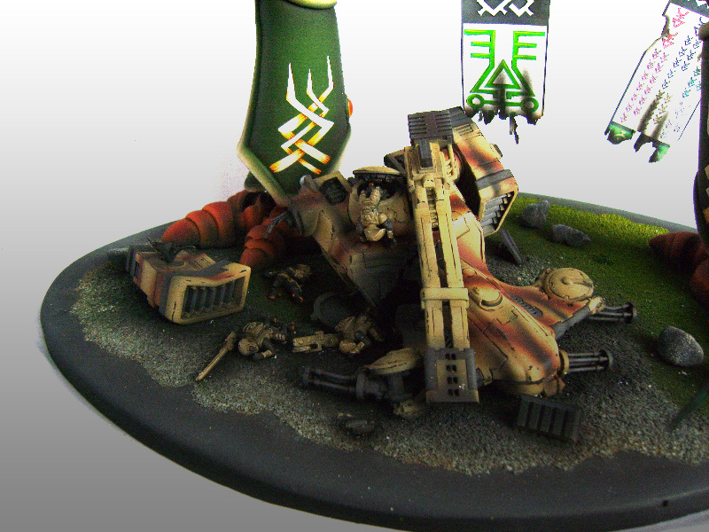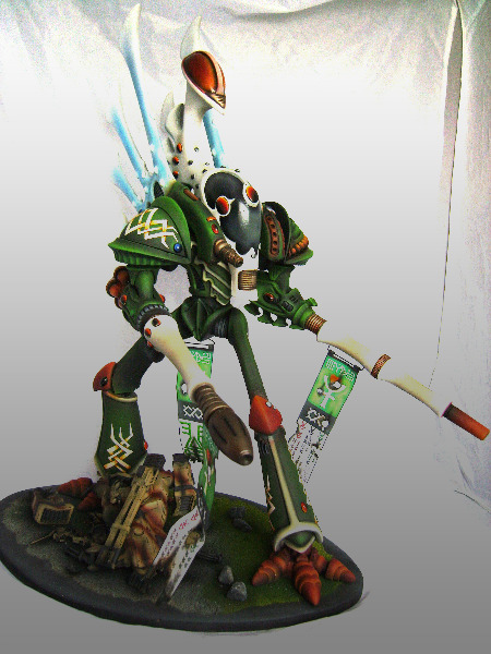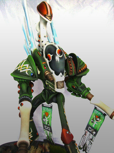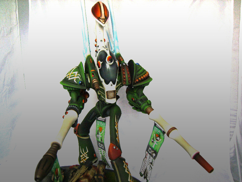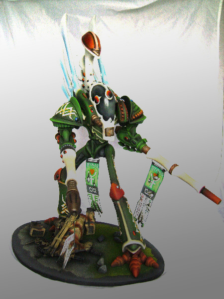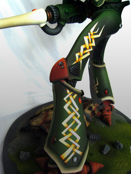 The gigantic machine threaded its way between the flaming wreckage with undeniable grace. In the cockpit Lo'Par frowned as he surveyed the battlefield. All around him lay the corpses of his brethren, Twisted wreckage of Eldar vehicles pock marked the area and ahead of him stood the Tau raiding party, bristling with weaponry, all pointed at him. Yes, he thought to himself, this day my brothers and I would join the spirits and he would be sure that when they did the last thing they would see was the fear in the faces of the Tau facing them.