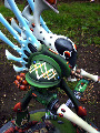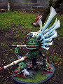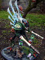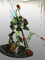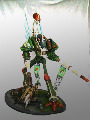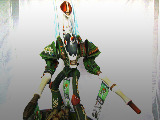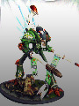 "Warlock Titans are the apex of Eldar engineering. Focusing the power of many Farseers and Warlocks interred withing their wraithbone core, Warlock Titans can harness horrific psychic power. They are a more potent variant of the Phantom class and move witha grace, speed and fore-knowledge that is seemingley impossible for a Vehicle of their size. Warlocks are crewed by the rare and unusual Eldar titan clansmen. Often twins or even rarer triples, the titan clansmen forma single mental consciousness with the spirits within the titan's wraithbone core. In this manner, the Warlock's move with perfect grace and operate with the reflexes of a living thing as opposed to the lumpen movements of the other races machines. Armed with the most deadly weaponry their craftworlds can provide, including the dreaded mind-scrubbing psychic lance, and protected behind a veil of holofields, Warlocks are masters of the the battlefield. Each a terrible foe, equal to the Warlords titans of the Imperium