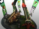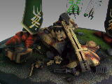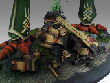 Lo'par's brothers targeted vehicle after vehicle, a squad of Tau warriors were obliterated under a hail of missile fire that snaked from the Titans shoulder launcher, yet another Tau tank plowed into the ground, smoke bellowing out of a huge hole in its side, the crew crawled out before death caught them up.