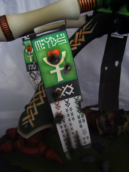 Lo'Par pushed forward, a ball of plasma screamed passed him to his right, the holo-fields had done their job, at this distance it would be nigh on impossible to lock onto the shimmering ghostly outline of the huge machine. One of Lo'Par's triplets returned fire, Lo'Par looked upon the enemy from his brothers viewpoint joined in the combined consciousness of the spirit stones within the Titan. He watched as the weapon locked onto a large ugly looking vehicle, atop sat a gun impossibly large for the vehicle that supported it, ‘no beauty,‘ he thought to himself ‘flowing curves scarred by angles and imbalance'. Pure white energy leapt from one of the Titans weapon. To others it simply looked like pure destructive energy, to Lo'Par's attuned physic mind he looked into the light and saw the mass of spirits writhing within, clawing their way towards the enemy, it by passed the vehicles shields as if they did not exist and passed effortlessly though the solid hull. Within Lo'Par could see the full horror, the spirits washed around the crew within, dragging their screaming souls into the ether, the Tau tank came to a halt