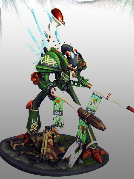 The gigantic Imperial machine lurched forward, as it passed over the brow of the hill one weapon began to pan and track the movements of the Eldar Titan while the others locked onto independent targets within the Tau force.