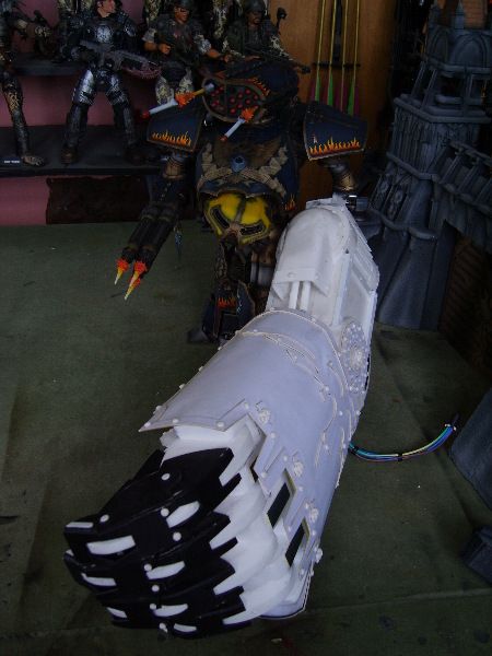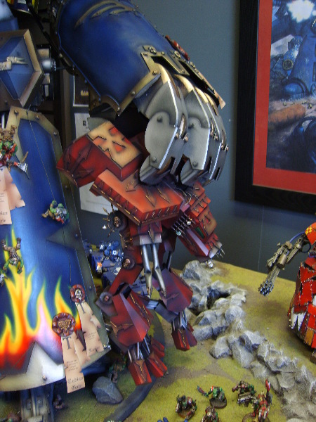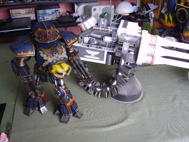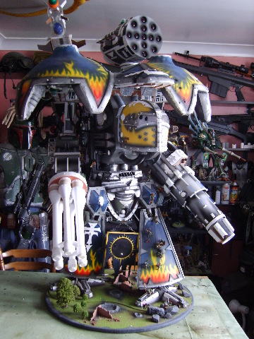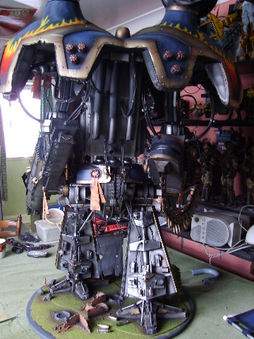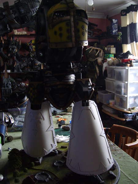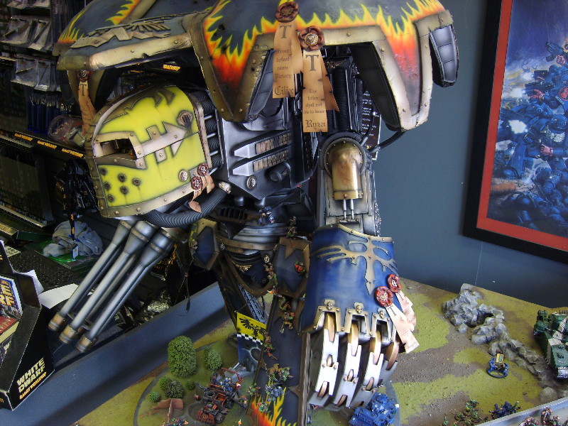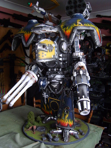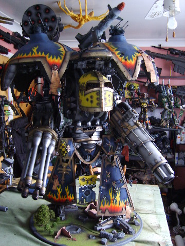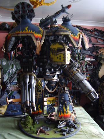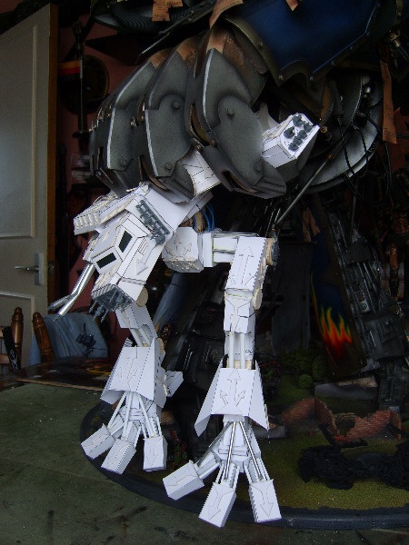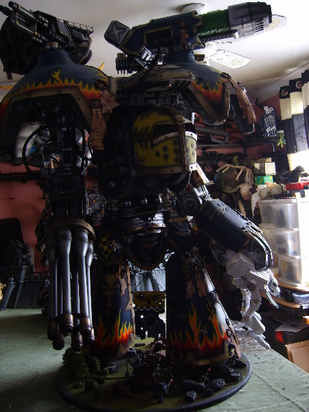 The rest of the monstrosity followed the hand out of the mist. Belial's nocs registered the enemy engine as nearly 300 feet tall and 150 feet across, he had never seen anything like it, bristling with weaponry the ground began to shake as it closed on their position. The bright yellow head piercing the mist hunched low below its carapace. It looked like a predator hunting it's prey. It's legs adorned with flames appearing as if it had marched from the very gates of hell itself.