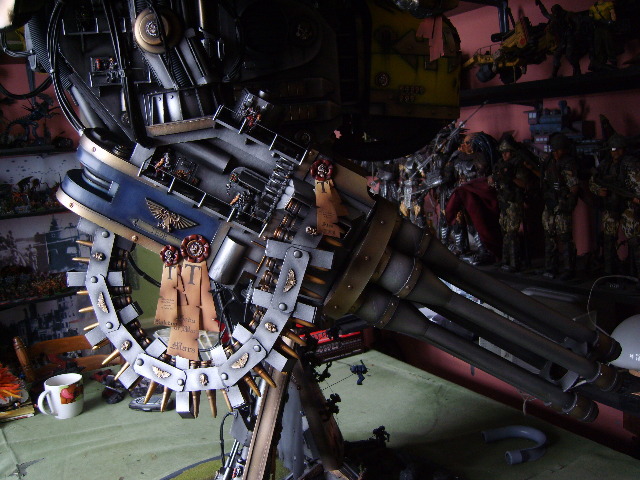 Commander Belial stood next to the breach of the field gun, he looked out across the broken land before him, as he panned the binocs they automatically focused and adjusted to the dim light and gloom. Occasionally picking out the infra red signature of an infantryman, nothing to worry about he thought to himself, the guns would cut anything down that attempted to cross the killing fields. Knowing the mighty engines of the Dark mechanicus were out there picking off what was left of the Imperial heavy cavalry filled him with a smug confidence that dragged a ragged grin across his face.