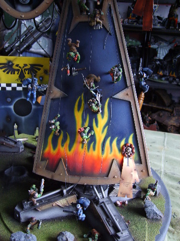 Grabbing his field binocs he surveyed the area the readings were indicating the approaching engine. Nothing but the dark mist of battle stretched before him, created by endless burning wrecks. Wait! What was that, bearing 275, he zoomed in the binocs on a disturbance in the gloom.