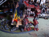 Belial dragged his face away from the binocs and wiped his eyes, that must have been an optical illusion caused by the clouds of swirling mist. He looked back intently pressing the scope to his face. My God, What the hell was going on? Before him in the distance he made out the outline of one of the mechanicus scout engines but it wasn't as it should be. Cart wheeling towards him, 30 or 40 feet above the ground, its long reverse jointed legs flailing helplessly trying to find purchase on the thin air that surrounded it. As Belial watched it careered into a large burned out vehicle, one of its legs was torn away spinning wildly away before crashing down throwing up dust and battlefield detritus.