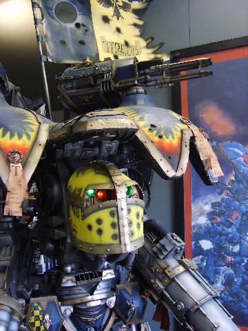 He once more scanned the gloom, there! He saw the second scout engine moving towards him from the mist, zooming in once again on the image he could see something else. Something attached to the top of the engine, What the? It was a hand? A huge metallic hand clutching tightly onto the limp and lifeless mecanicus scout engine.