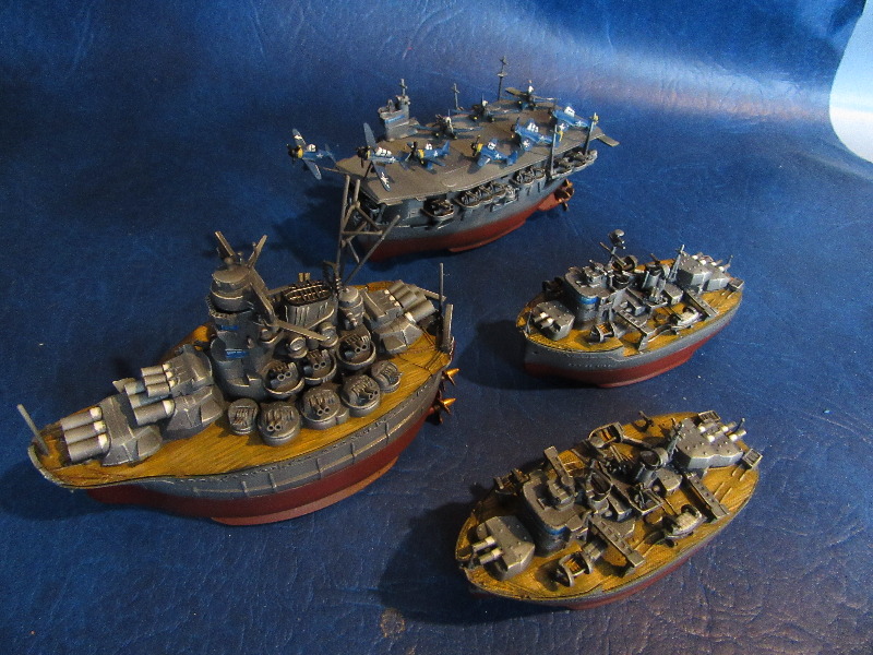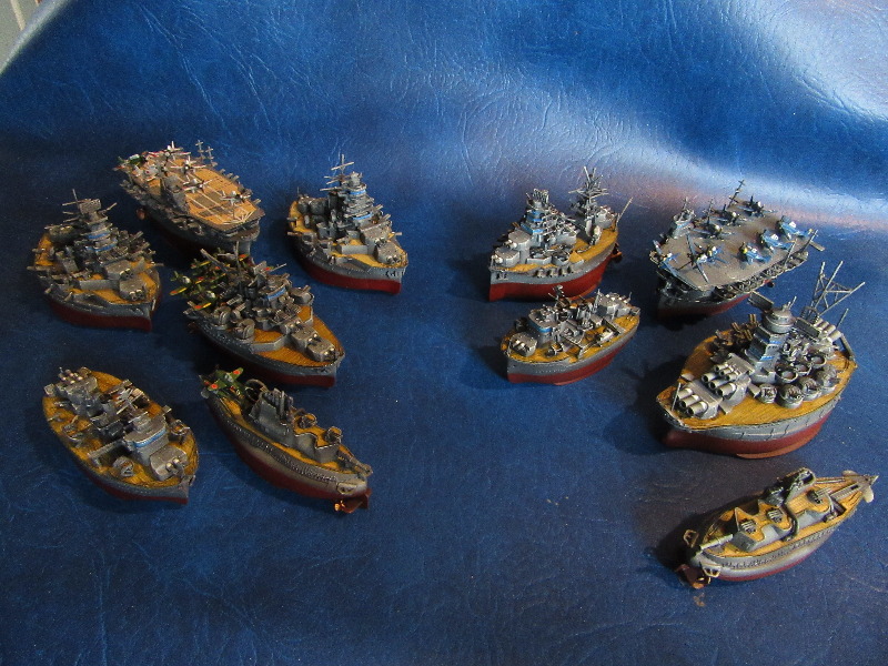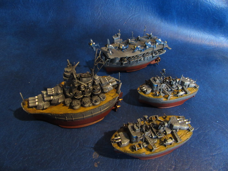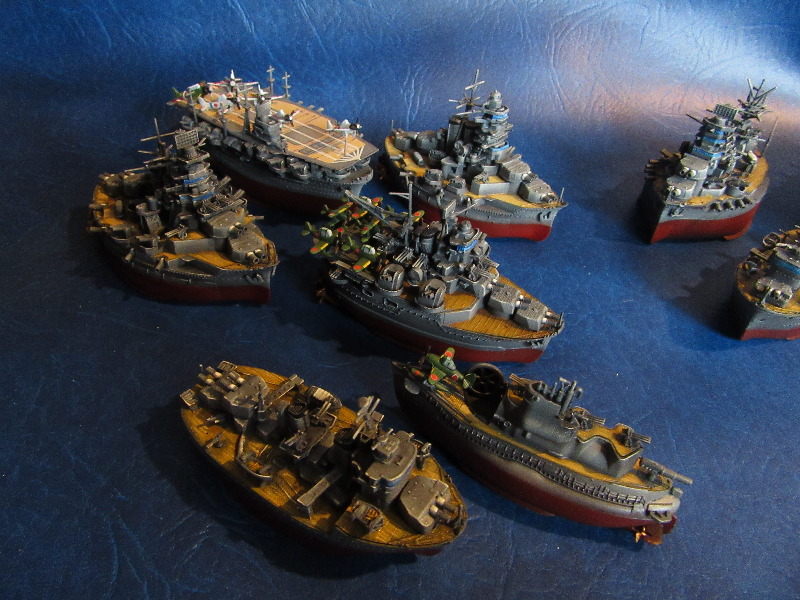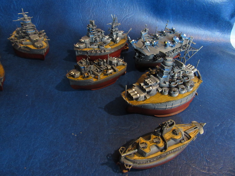 Chibi ships! These are actually all Japanese ships but I have painted the second carrier as a US vessel so we can have some fleet on fleet action! |