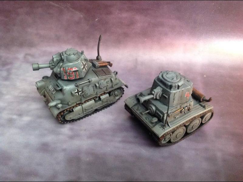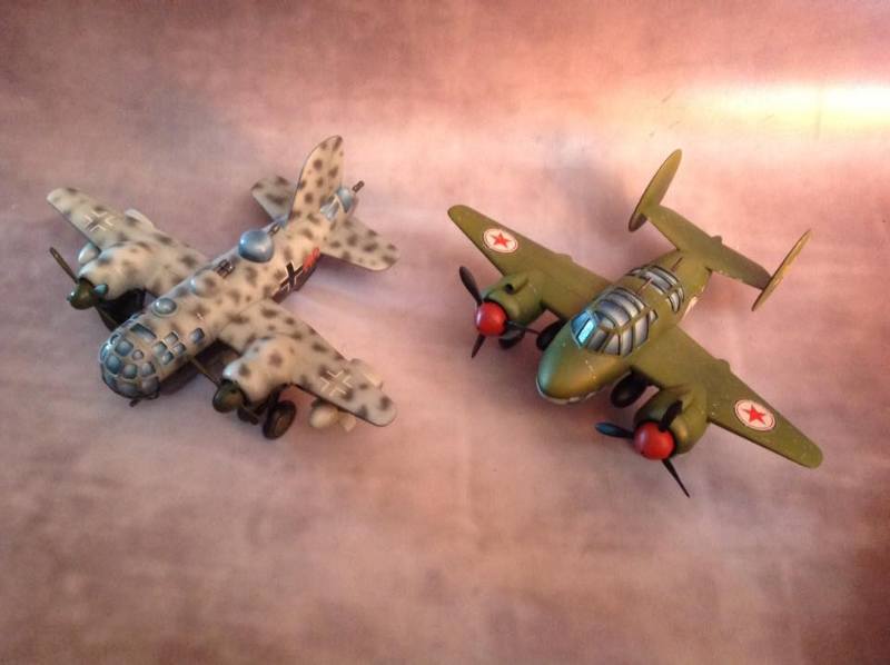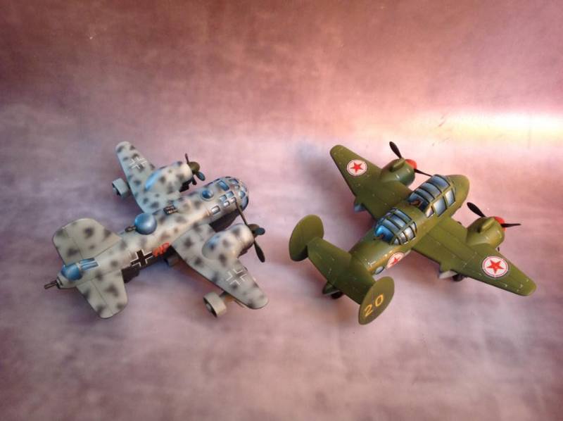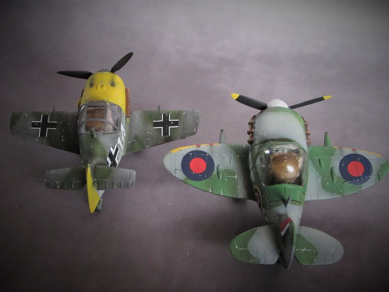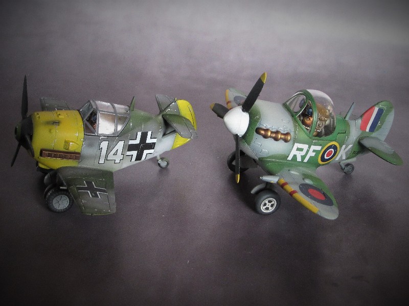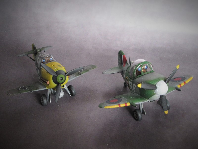 Tiger models Spitfire and Me109. absolutely fantastic kits and soooo cute! Don't come with pilots so I used some recasts of my Rivetwars pilots and modeled oxygem masks to WW2 them up a bit :) |