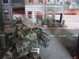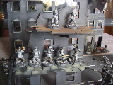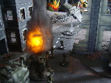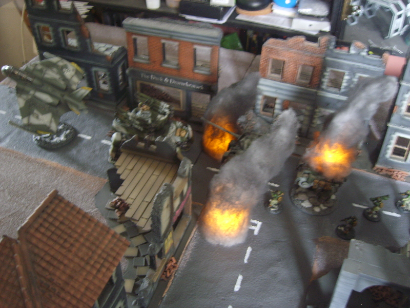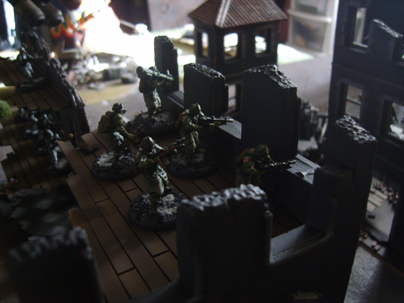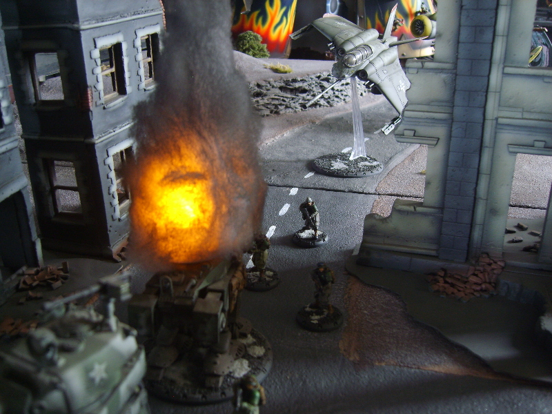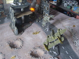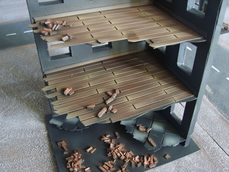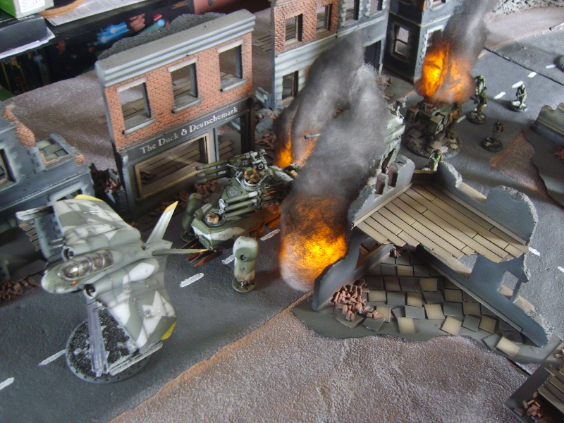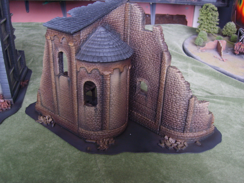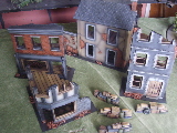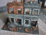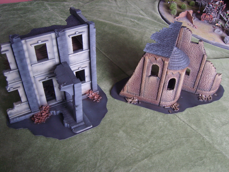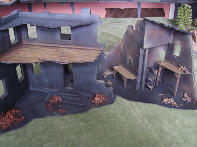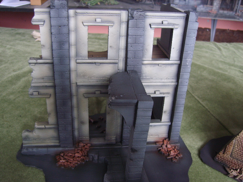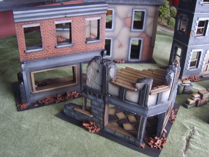 Dust Scenery and buildings A few people have asked for more details about the buildings I use for my games of Dust Warfare, so here you are! To date most of my buildings have been purchased from an excellent seller on Ebay called 'fogmodels'. They are plaster based models that require minimul assembly. I generally glue them to a thick card base then create floors, etc from cardboard. Keep the rubble simple, just for effect as a long time gamer I can comment from experience that there is nothing more annoying than trying to stand those damn minis up straight when they are presented with a minefield of rubble, rocks and debris...KEEP IT SIMPLE FOLKS! It should be noted that most of these buildings are 1/35 scale too, you hardly notice the scale difference to be honest and when your adding those false floors use a dust mini to fix it to the correct height to allow them to see out of windows! Besides, have you ever tried to get hold of 1/48 scenery, like rocking horse sh*t and pay through the nose Check out the ongoing battle reports for in game pictures, etc. They can be found here Battle Reports page Check out this video of the BURNING COLUMNS OF DOOOOOOOM to see them in all their flickery glory! |