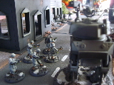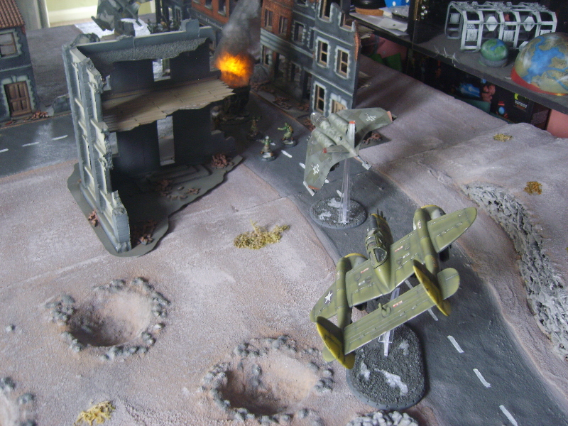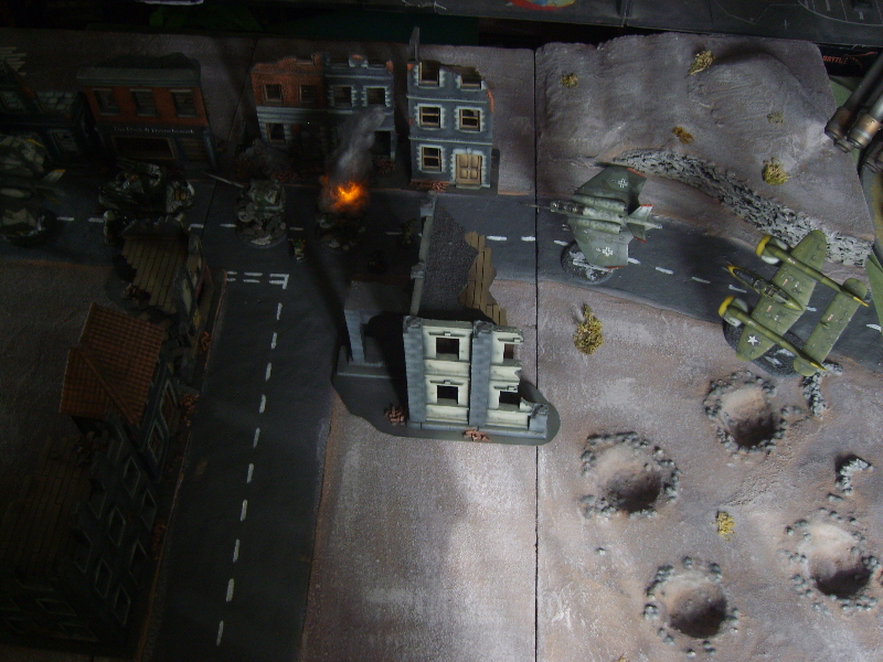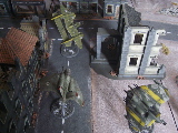 A couple of Axis Hortens attacking a column of Allied vehicles, Pelican in hot persuit! The tables are then turned and the outnumbered Pelican attempts to lose its assailants by heading to the deck and taking the battle into the winding streets of the city in a deadly game of cat and mouse! |