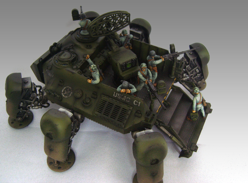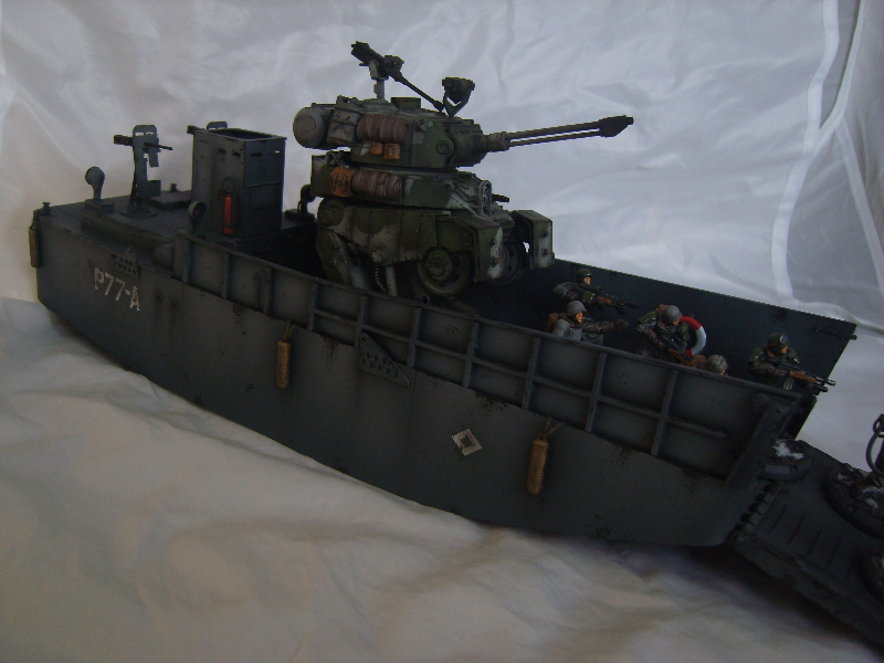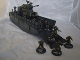 Modded this readily available 1/48 kit into an affordable landing craft that works with the Dust miniatures. As you can see very little extra work required, just a matter of widening the cargo area and filling the gaps..jobs a good 'un! |