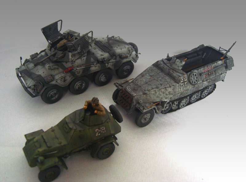 Tamiya 1/48 Puma and Halftrack. Perfect for Dust. The Puma is shown with the AA and Command Panzerprinz turret variants |