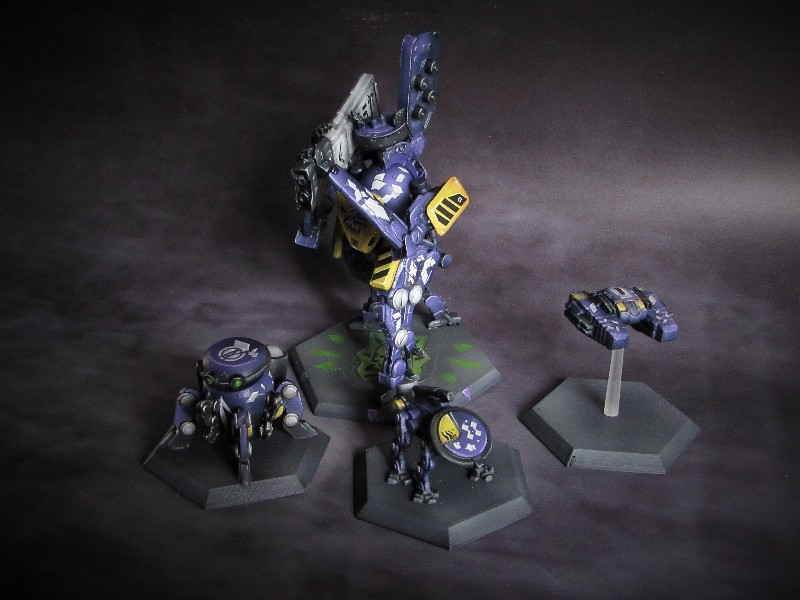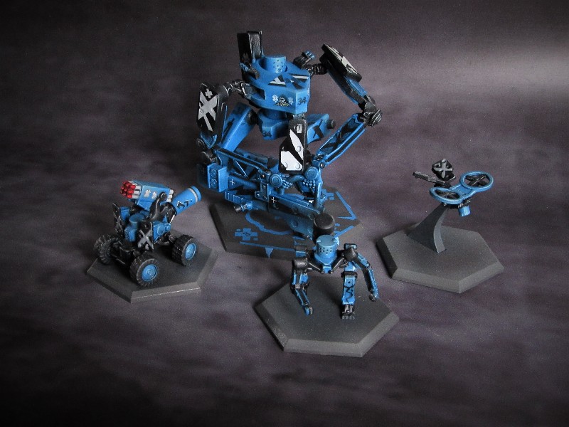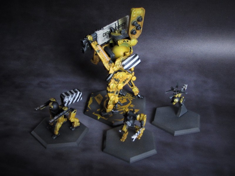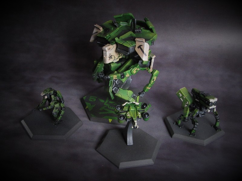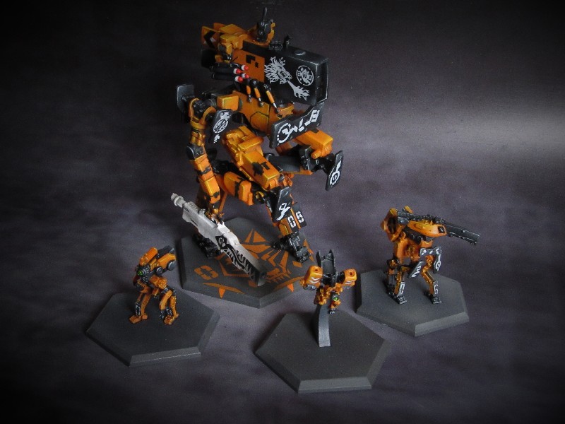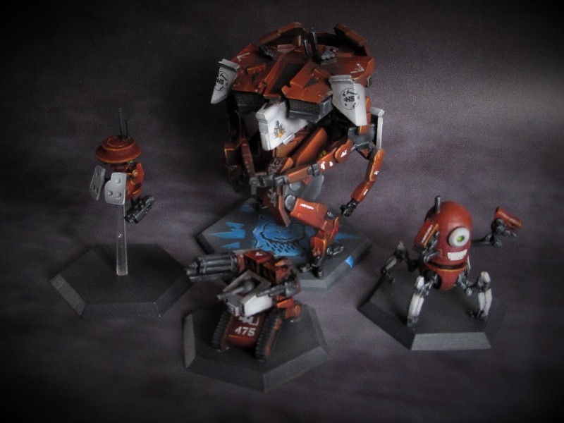Of course now those new factions were painted to a better standard I simply couldnt leave the original core box in it's Chinese mass produced chic so gave them all a tickle over with the airbrush and trusty old hairy stick. The core Heavy Hitters are not that bad to work with tbh but the support units were simply single colour plastic figures. Came out well though! |