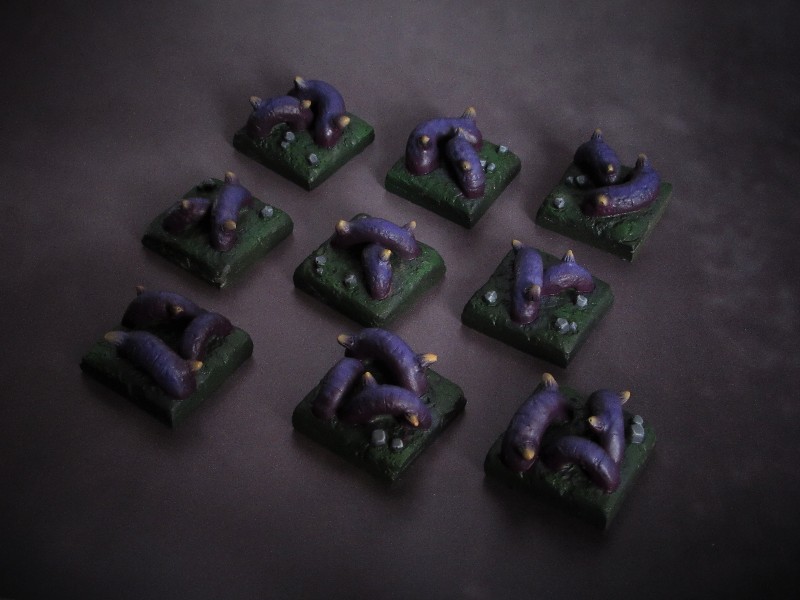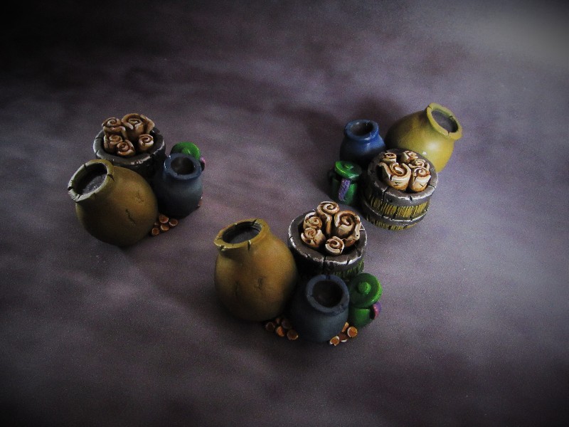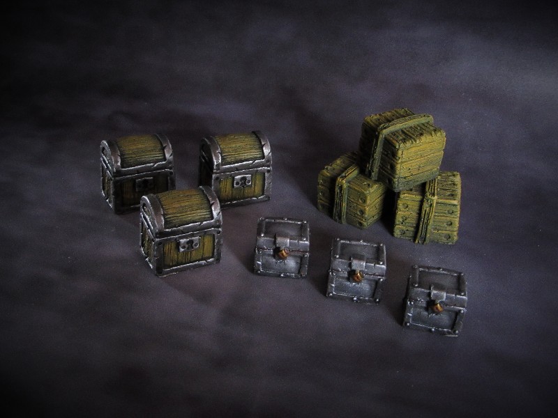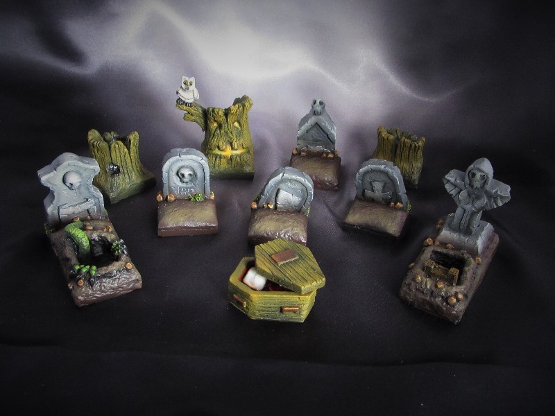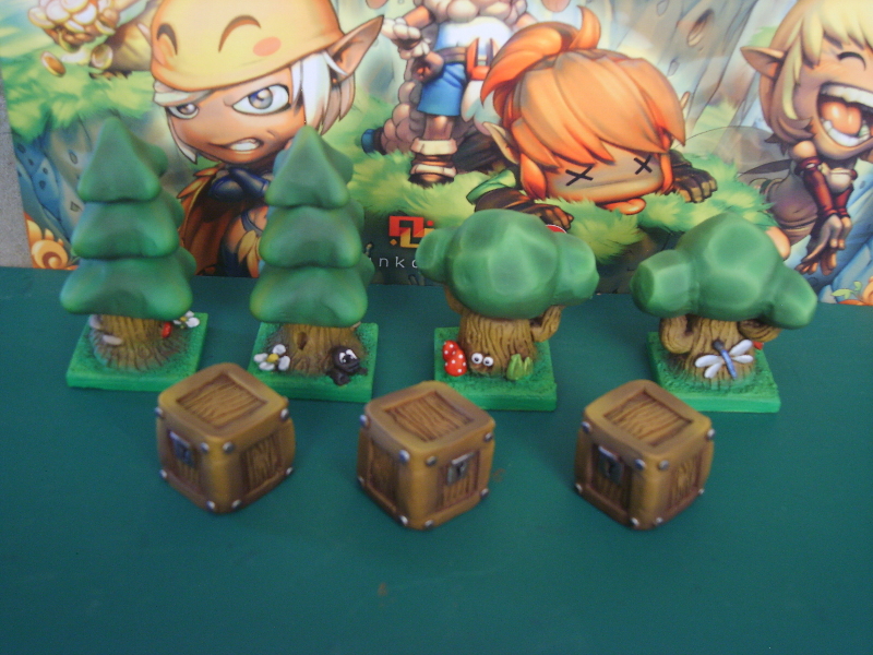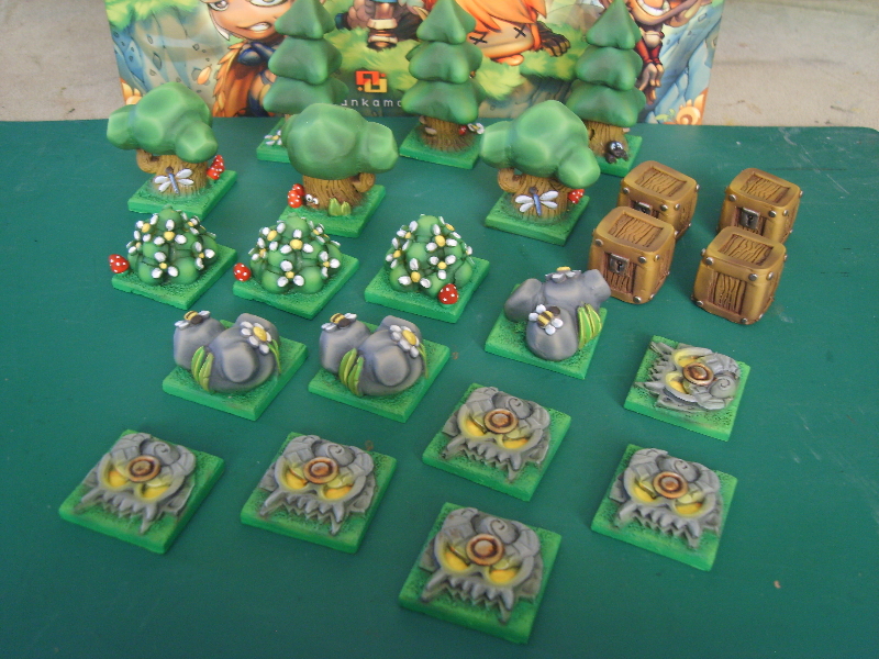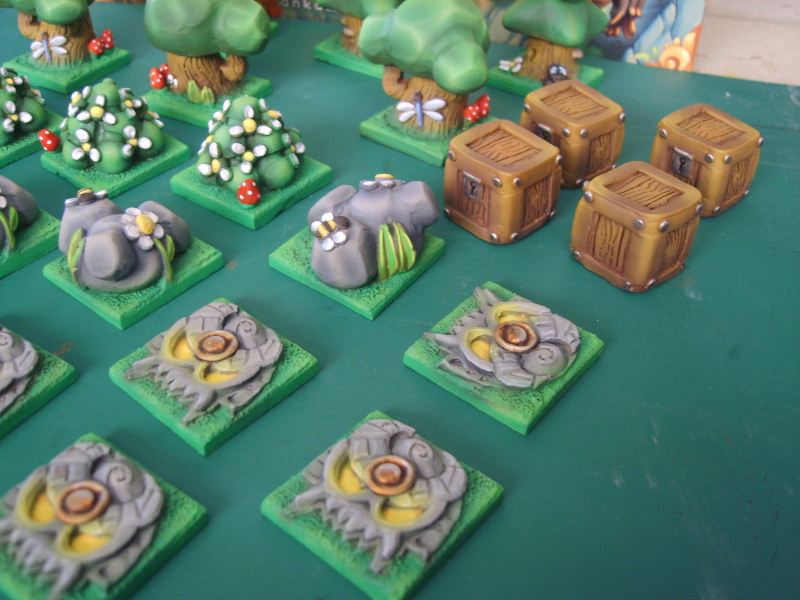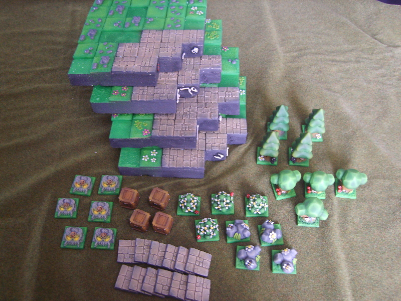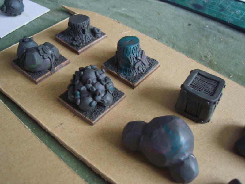 Two types of trees, snozzleberry bushes, boulderlumps, crates and Demon tiles all sculpted and painted!