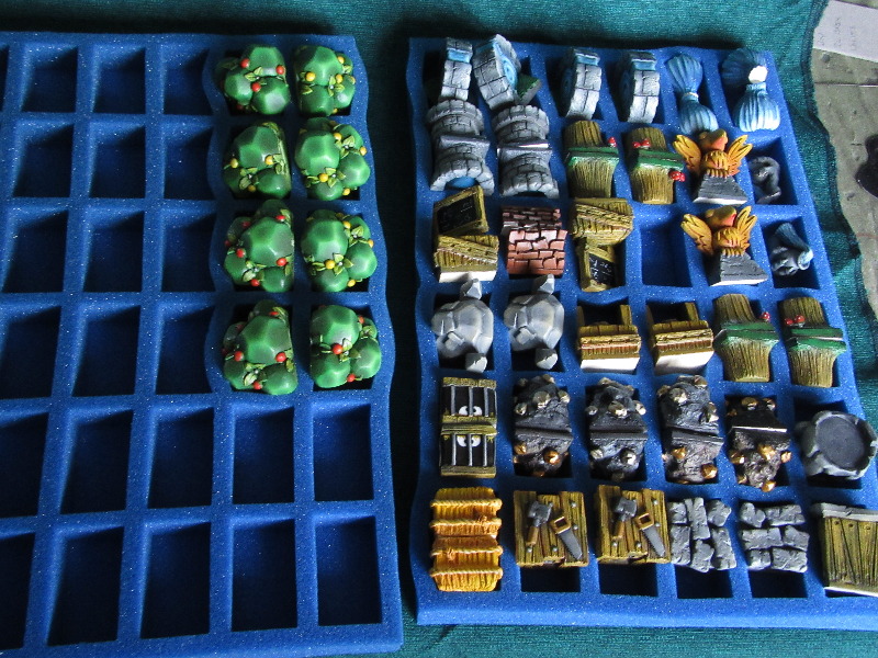That's all the Kros Quest compatable scenery painted! All fits neatly into a couple of layers of a KR case too!