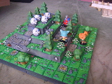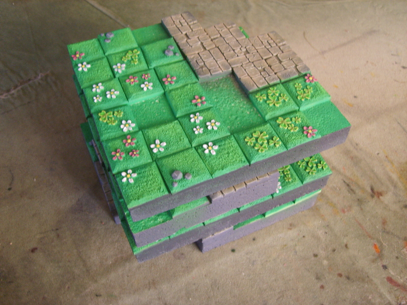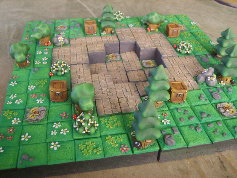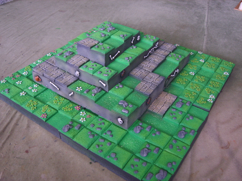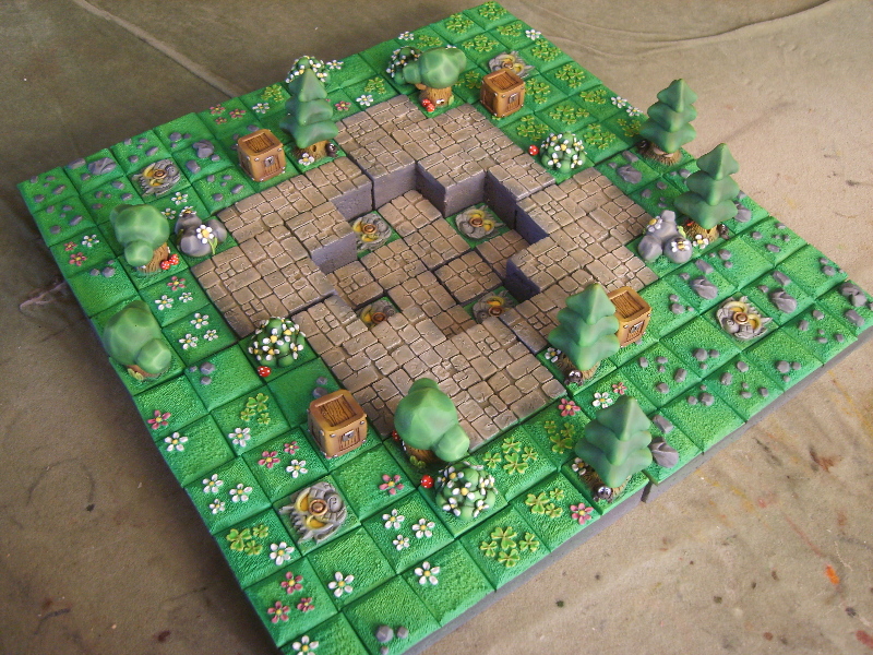 board section mock up, will have a 'pit' in the middle and will be broken down into 4 quarter sections to allow easy storage. I have decided to not glue the bush, demonic rewards and tree squares as this will allow some degree of customisation. the rest of the squares will be fixed so its not a hassle to set up each time I want to play!!
