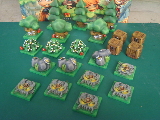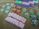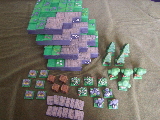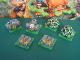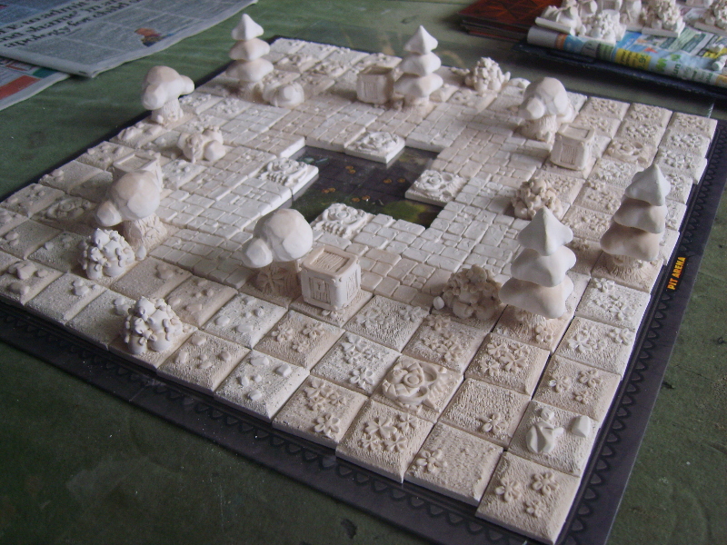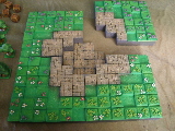 I decided to glue the standard tiles in the same configuration as the game board leaving the 'object' areas loose. This saves a lot of hassle when setting up as you don't need to assemble all the tiles each time you play and the scenery can be switched around a bit allowing a degree of customisation to each game. The standard tile don't effect gameplay btw