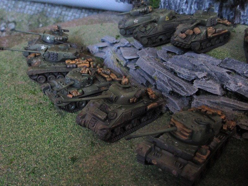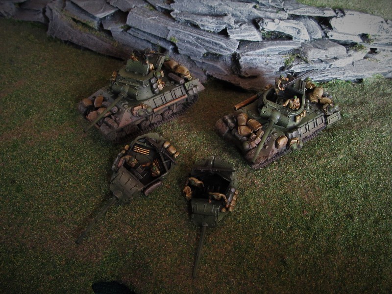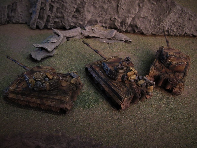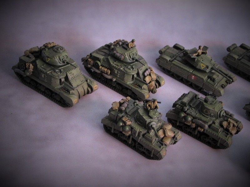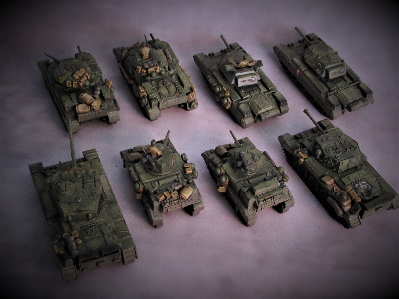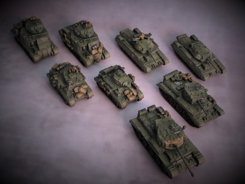 Latest wave of tanks painted, I'm not geared up scenery wise for a desert campaign so I took a little artistic license and painted these up for the European theatre. It's too hot and that sands gets everywhere anyhow! |
