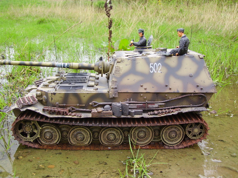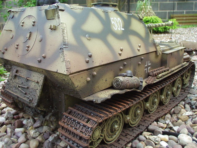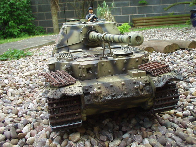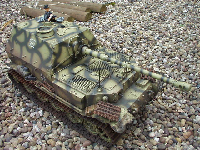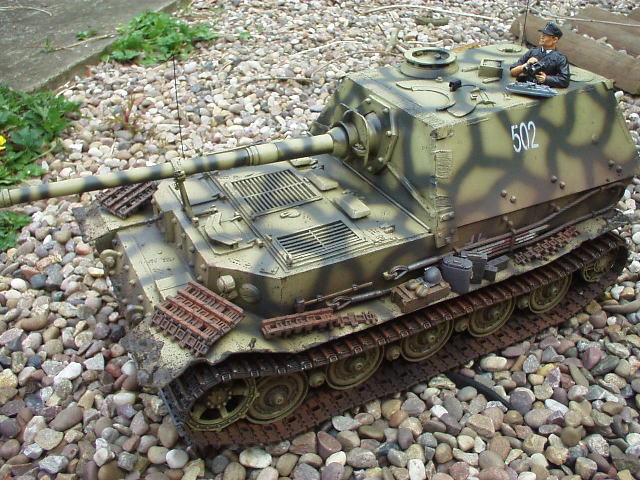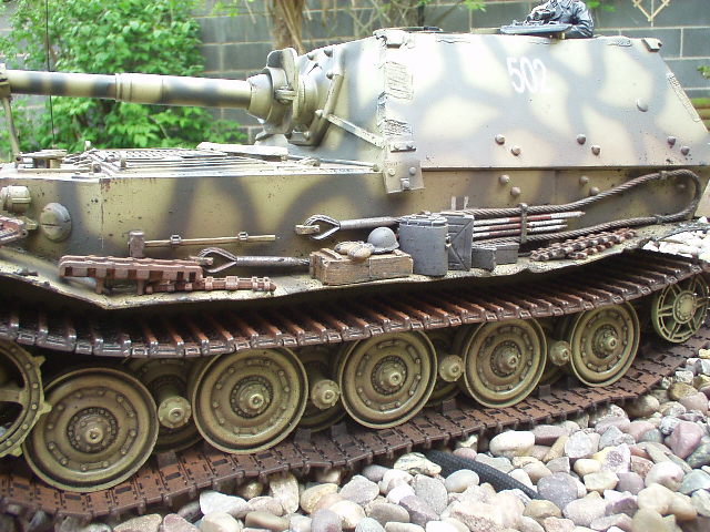 The Elefant tank destroyer fell somewhere between earlier lightly armoured 'lash-up' designs, such as the Nashorn, and the successful Panther-based Jagdpanther. Based on the PorscheTiger design (and initially known as Ferdinand after Ferdinand Porsche), the Elefant was one of the first German vehicles to carry the long-barrelled 88mm (3.46in) flak gun. The full designation of this gun was the PaK 43/2 L/71, the suffix indicating that it was 71 calibres long. This is my version of the Elefant tank, based on the King Tiger Chassis (which I had spare from the Panther project) its very much a 'what if'? sort of set-up. What if the Elefant hadnt had such a disastrous debut on the eastern front had been developed throughout the war? |