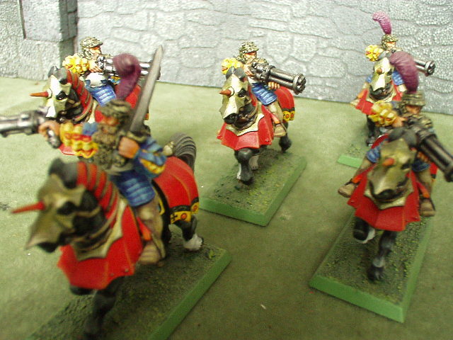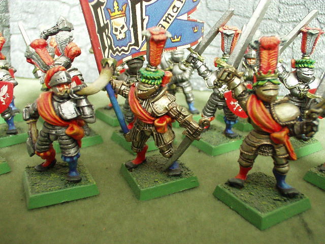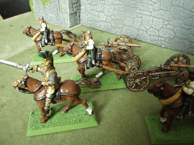 I have been painting miniatures for well over 15 years now and consider myself by no means an expert, I find there are always new techniques and ways to approach things. This Empire army was always my favourite (and biggest). Just a few pictures to give you a taster of the quality of painting, bear in mind that ALL my armies are (or should I say were, considering they have gone to pastures new)painted to this standard, even rank and file so they looked absolutely amazing when gathered together in a big battle. Of course thats then I ever got time to play, in-between painting figures! |
