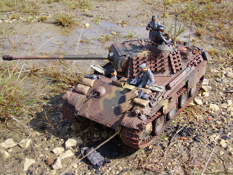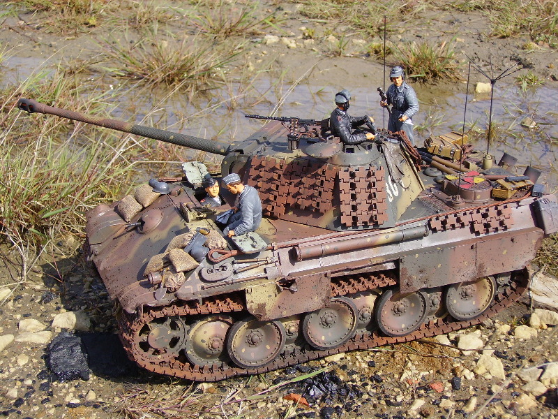 Panther Athough it had a disastrous combat debut, the Panther matured to become one of the best all-round German tanks of the war. Conceived as a response to the Russian T-34, the Panther featured sloped frontal armour, wide tracks, a powerful engine and a good gun. As a result, it had good mobility, especially on rough terrain, and was available in large enough numbers to make a difference in many battles' This model is the Newest from tamiya, RC full option Panther |
