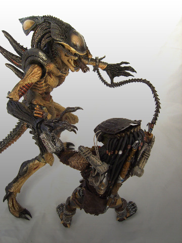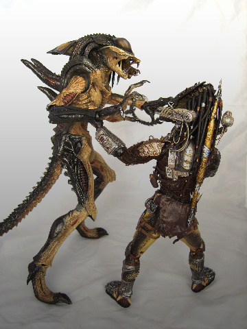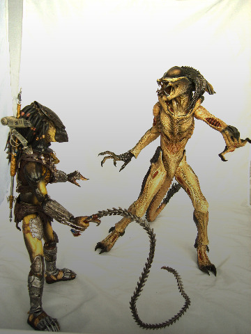 AvP Requiem These 2 are by far the best releases by Hot toys to date in this range, the Predalien goes way beyond cool as does the "wolf" The Predator was knicknamed the 'wolf' on set after Harvey Keitel's famous character from Pulp fiction as this fella is called upon to mop up all the mess! |