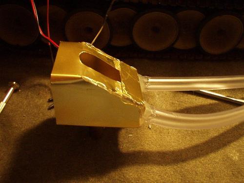 The basic principal is the same as the King Tiger unit with one major difference. The smoke is blown along a long tube from the front of the tank to the exhausts at the rear. The easier option would have been cutting away at the speaker box and fitting it to the rear wall as in the King Tiger, however, from experience of previous conversions I have found that modifying the Tamiya speaker box in such a way can make a drastic difference to sound quality and volume. In short I would rather it be a little moere fiddly than ending up with a mighty Tiger roaring like a Trabant!!! Anyhow, unless otherwise stated all the same materials, techniques and tools have been used as in the King Tiger fit, its just as straight forward, have fun :O) |