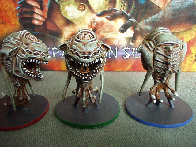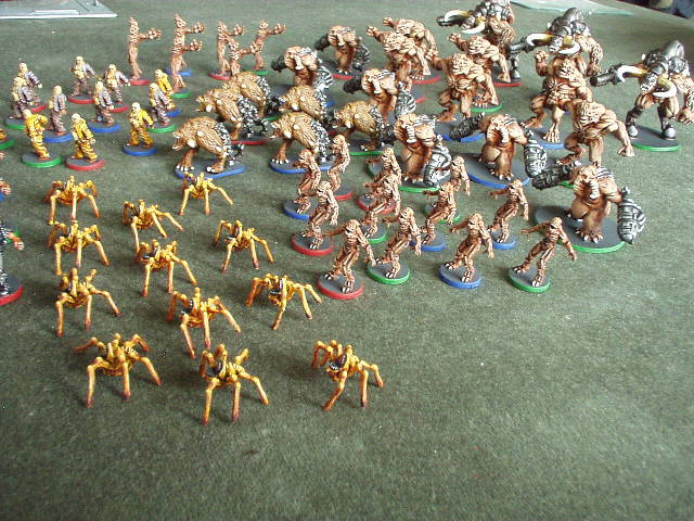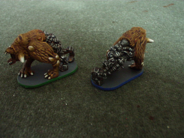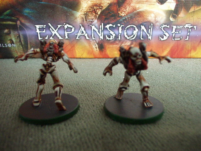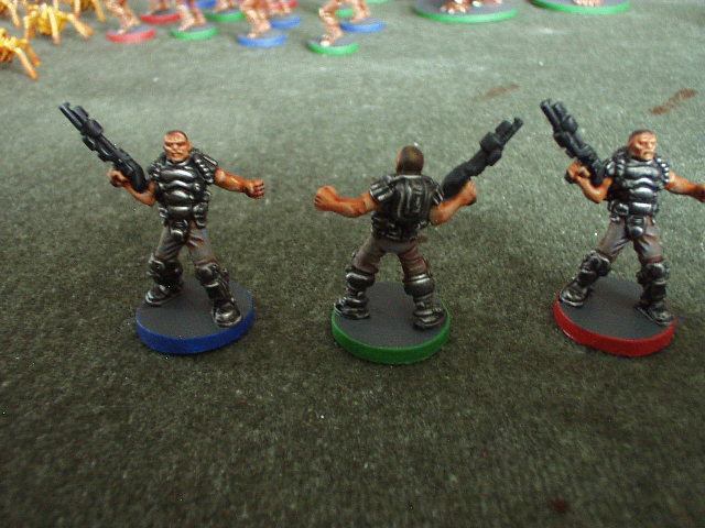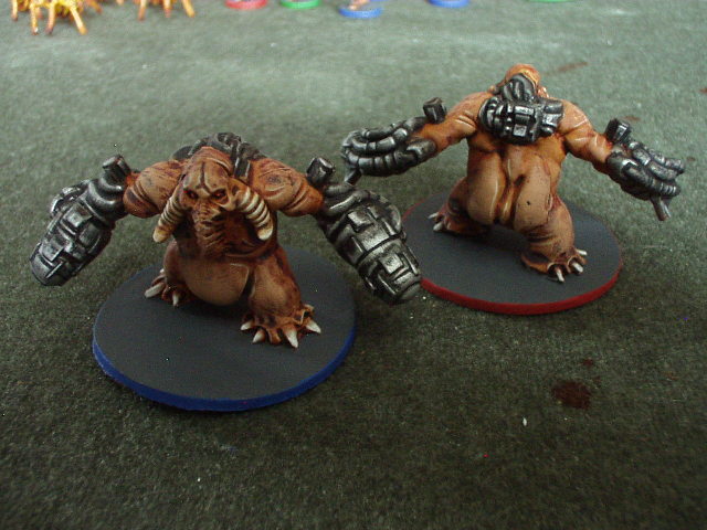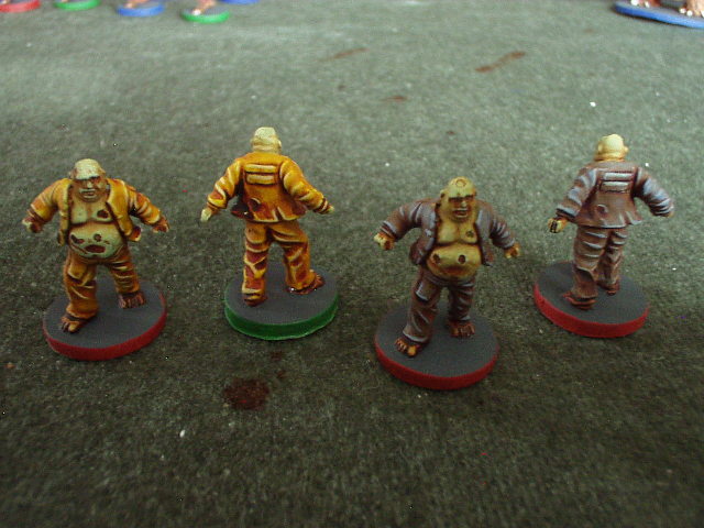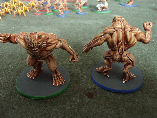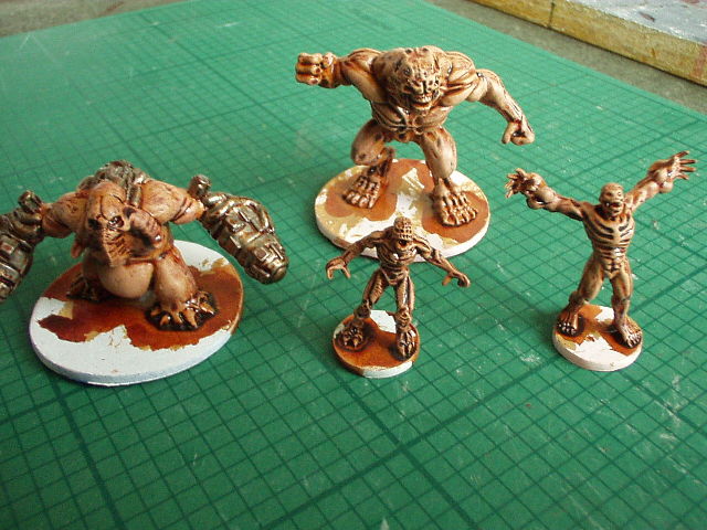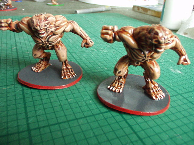 Step 4 Really thats all there is to it, only thing thats left to do is pick out the details such as eyes and teeth and paint the bases, easy! Try to over exagarate the details such as the teeth for instance, go right up to white for the final highlight so they really stand out, on figures like these which are mostly one colour you really need a focal point and it gives them a great cartoony 'cell shaded' sort of look in my opinion |