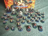 A Guide to speed painting! These particular figures are from the excellent DOOM boardgame but there is no reason why the same techniques can't work with any miniatures, enjoy! Click here to see the Descent figures!!! Click here to see Forbidden Forest figures!!! Click here to see Well of Darkness figures!!! Click here to see Altar of Despair figures!!! Click here to see Tomb of Ice figures!!! Click here for a quick guide to creating fancy figure bases!!! Speedpainting Xtreme, Skeleton Dragon in 1 1/2 hours!!! Bear in mind that a total of only 14 colours were used too! Back to other figures page for lots more funky stuff! Bronzed flesh, Bleached bone, gunbolt metal, mithril silver, snake bite leather (demons), sulphur yellow, Space Wolf Grey, Rotting flesh, white, black, red, flesh wash, black ink. That's 14 pots for the WHOLE lot! |