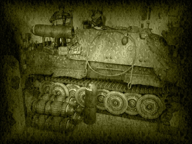 the Elefant advances on the Eastern front, support troops following |