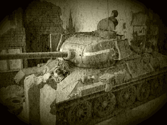 A lone T34 stalks the ruins of Berlin |