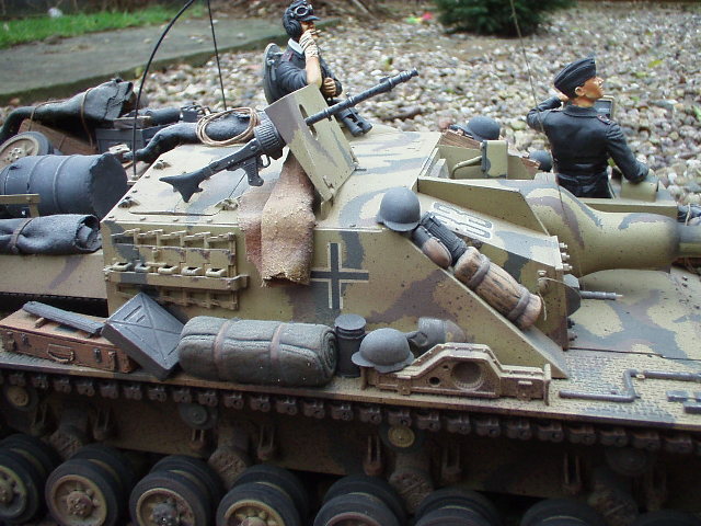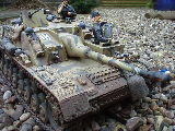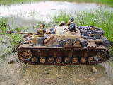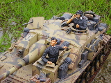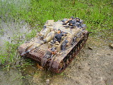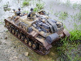 Stug IV From 1943 onwards the German Army was pressed into the defence, conducting only small counter-attacks and defensive battles.The main battle tanks lost out in favor of the tank destroyers, which became evident in the production numbers. The chassis of the PzKpfw IV was now also used to produce tank destroyers like the Jagdpanzer IVand the StuG IV. Production of the StuG III was delayed in 1943 due to Allied bombing, and production capacity was continued partly by the firm Krupp which resulted in the StuG IV, which was the combination of the StuG III with the chassis of the PzKpfw IV. The two standard tanks of the Wehrmacht, the PzKpfw III and PzKpfw IV, were quite similar in external measurements and combat weight. The only essential difference could be found in the layout of the running gear. The PzKpfw III had a modern torsion bar suspension, the PzKpfw IV had a outdated but easily repairable leaf spring suspension. From december 1943 to march 1945, more than 1100 StuG IV were produced by Krupp. Although being designed as a support vehicle, the StuG played its major role as a tank destroyer. By the spring of 1944, the StuG units were credited with the destruction of 20.000 Russian tanks, a number which only increased later during the war while fighting defending battles on different fronts. As exampled by an after-action report from Panzerjager-Kompanie 1045 with StuG III in the Nachrichtenblatt der Panzertruppen, December 1944: "The company was prepared as divisional reserves. The enemy attacked one morning after a half-hour pummeling of artillery preparatory fire with heavy air support, and about 30 T34 tanks and mechanized infantry deployed on a wide front. The enemy tried to force a breakthrough with portions of 5 or 6 divisions. The terrain was unusually favorable for the enemy. Above all, the forested areas provided him with suitable firing positions and assembly areas. The company went into action with 9 Sturmgeschütz, and on the first day was able to knock-out or destroy the following within three hours: On the second day: The tanks were knocked-out at ranges of 600-800 meters. In a period of 15 minutes, one StuG was able to hit five tanks out of a column. The enemy didn't fire a single aimed round. The remaining T34 tanks were individually hunted down. One T34 was knocked out at a range of 1000 meters with 3 rounds. |