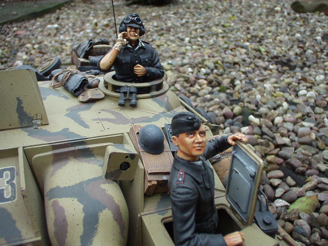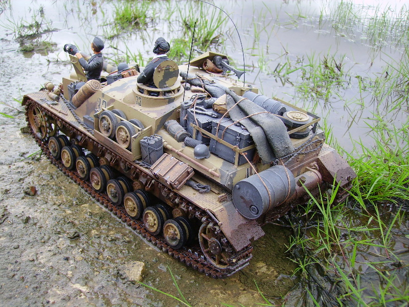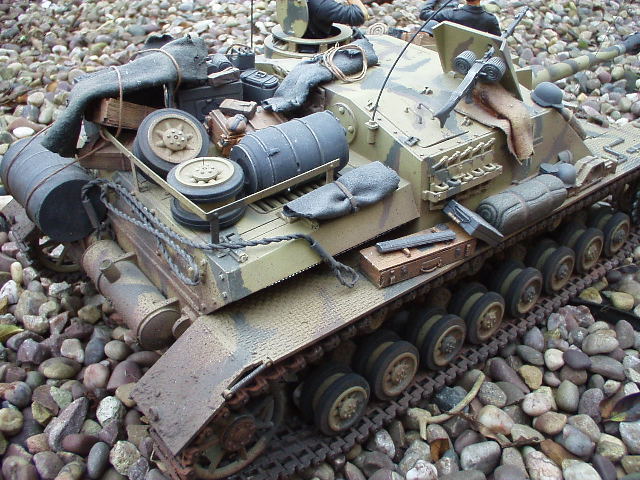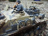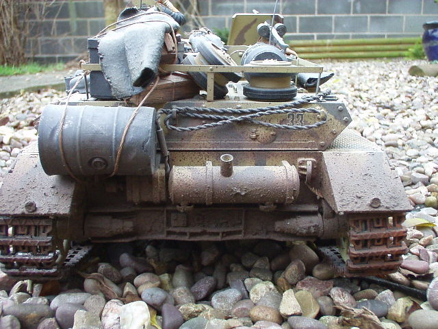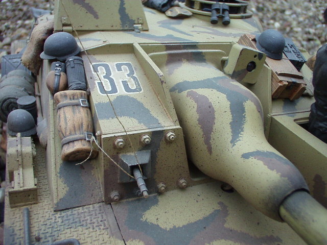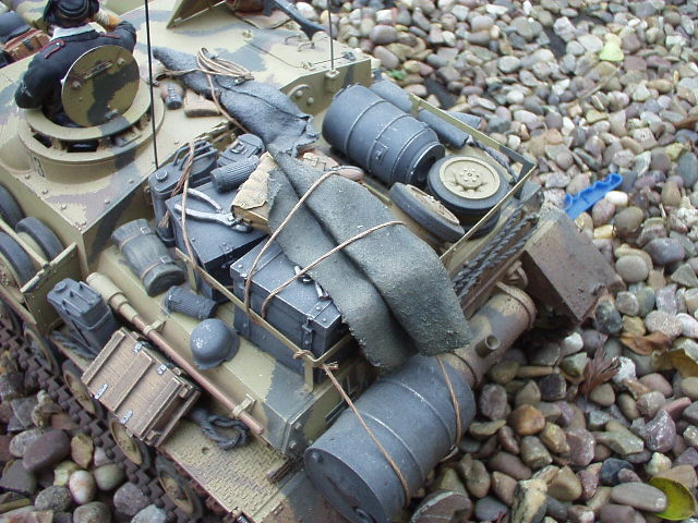 Close up showing some of the stowage on board. The only mod I made to this tank was the little parcel rail you can see in this picture. I did consider adding the armoured panels of later models but seeing as I did this to the Panzer I figured I would go a different way with this, well, that and I simply couldnt be arsed! |